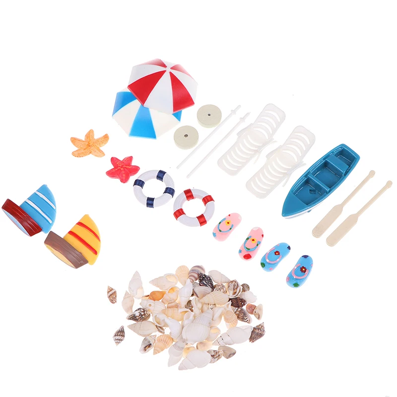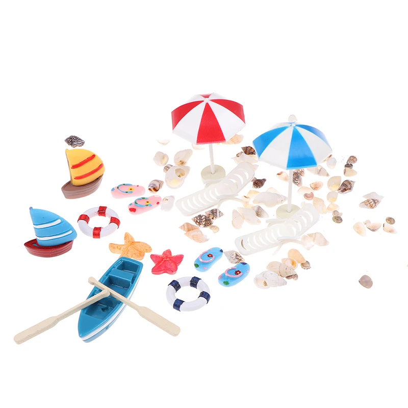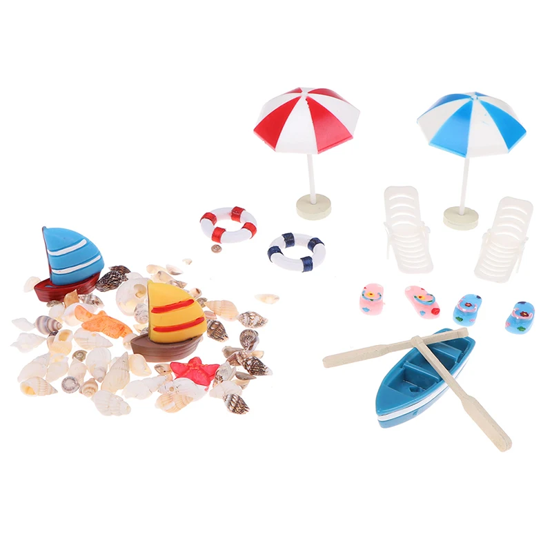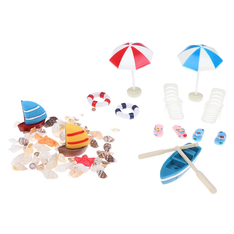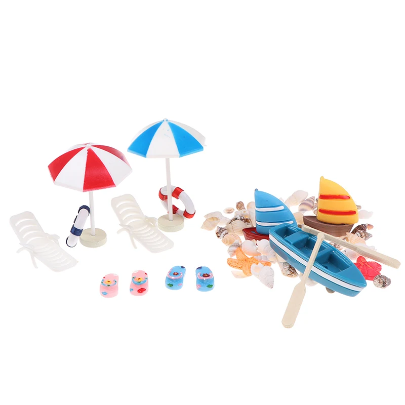 13 шт.компл. миниатюрный шезлонг, пляжный зонт, лодка, наборы ракушек для кукольного дома, сценическое украшение, аквариумный декор, аксессуары