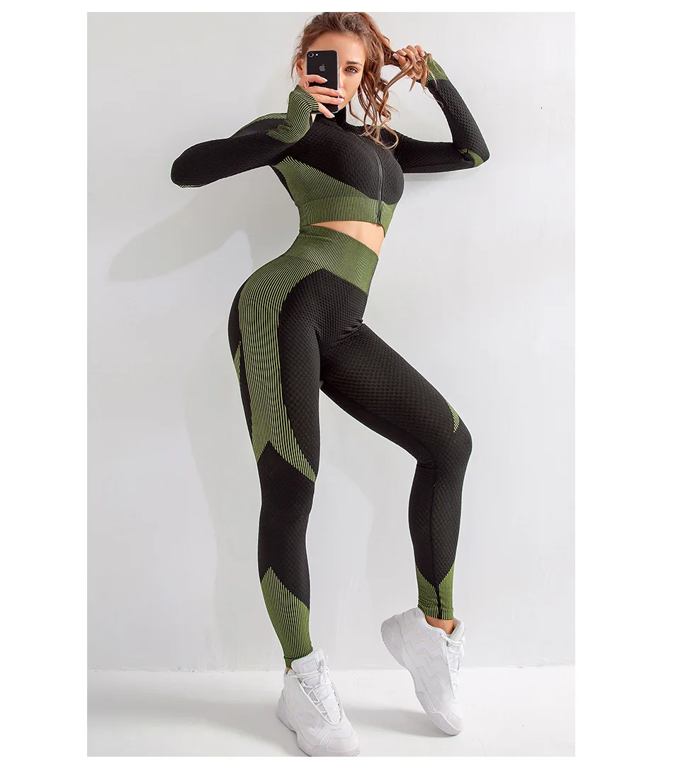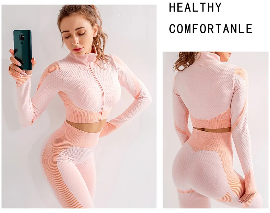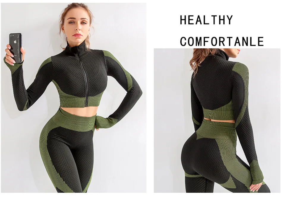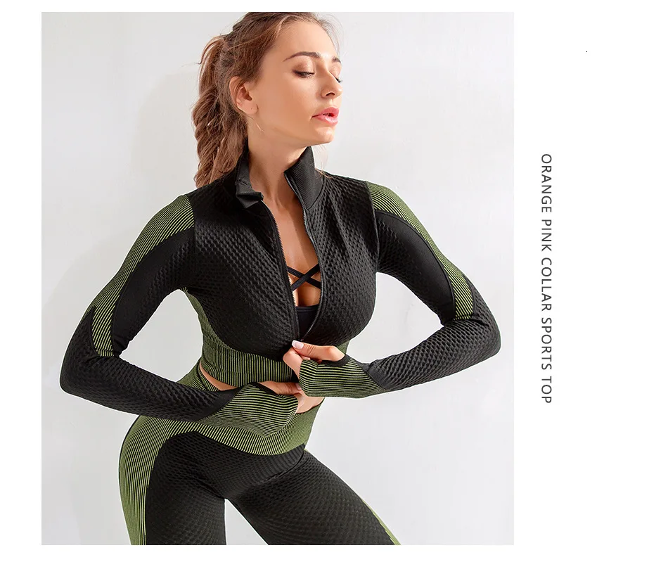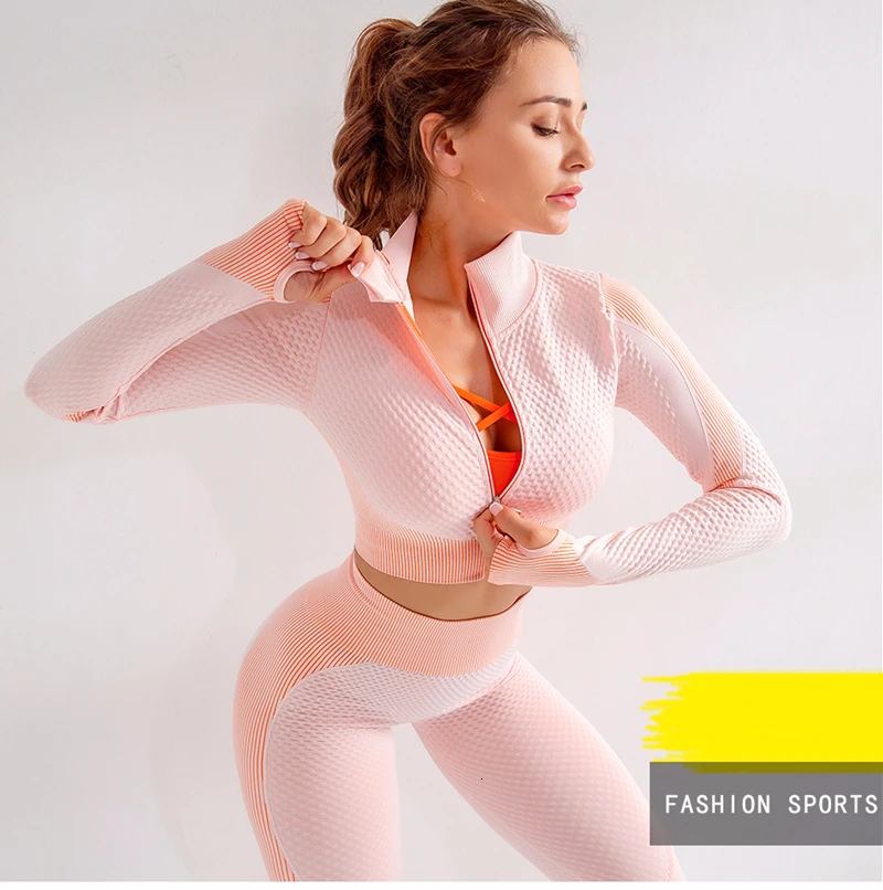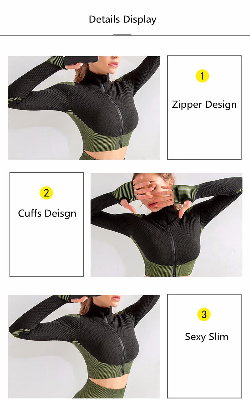 Йога куртка спортивное пальто для женщин Одежда для спортивного зала, на застежке-молнии, с длинным рукавом, бесшовный укороченный топ фитнес ткань отводящая влагу тренировки NCLAGEN