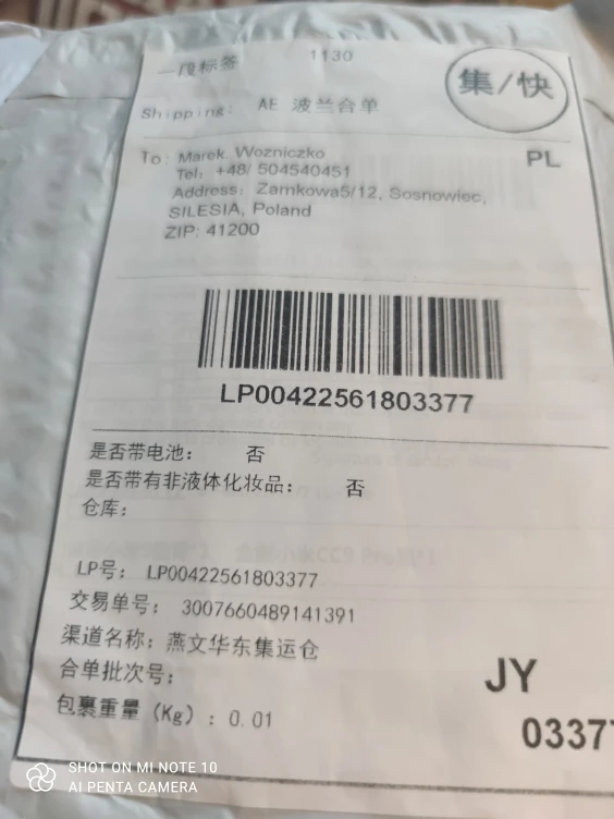 Страна: PL Material: Redmi Note 8 Pro Color: Black Доставка: Cainiao Super Economy Global 02.01.2021