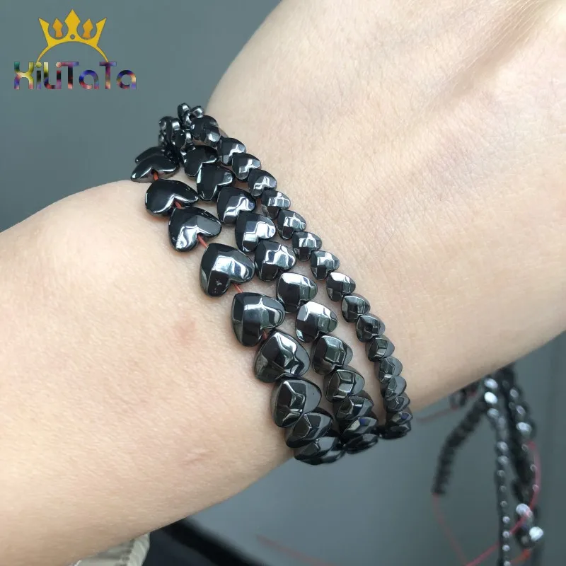 Граненые бусины из натурального черного гематита в форме сердца, незакрепленные бусины для самостоятельного изготовления ювелирных изделий, браслет 15 дюймов, 4 х 4 мм6 х 6 мм8 х 7 мм