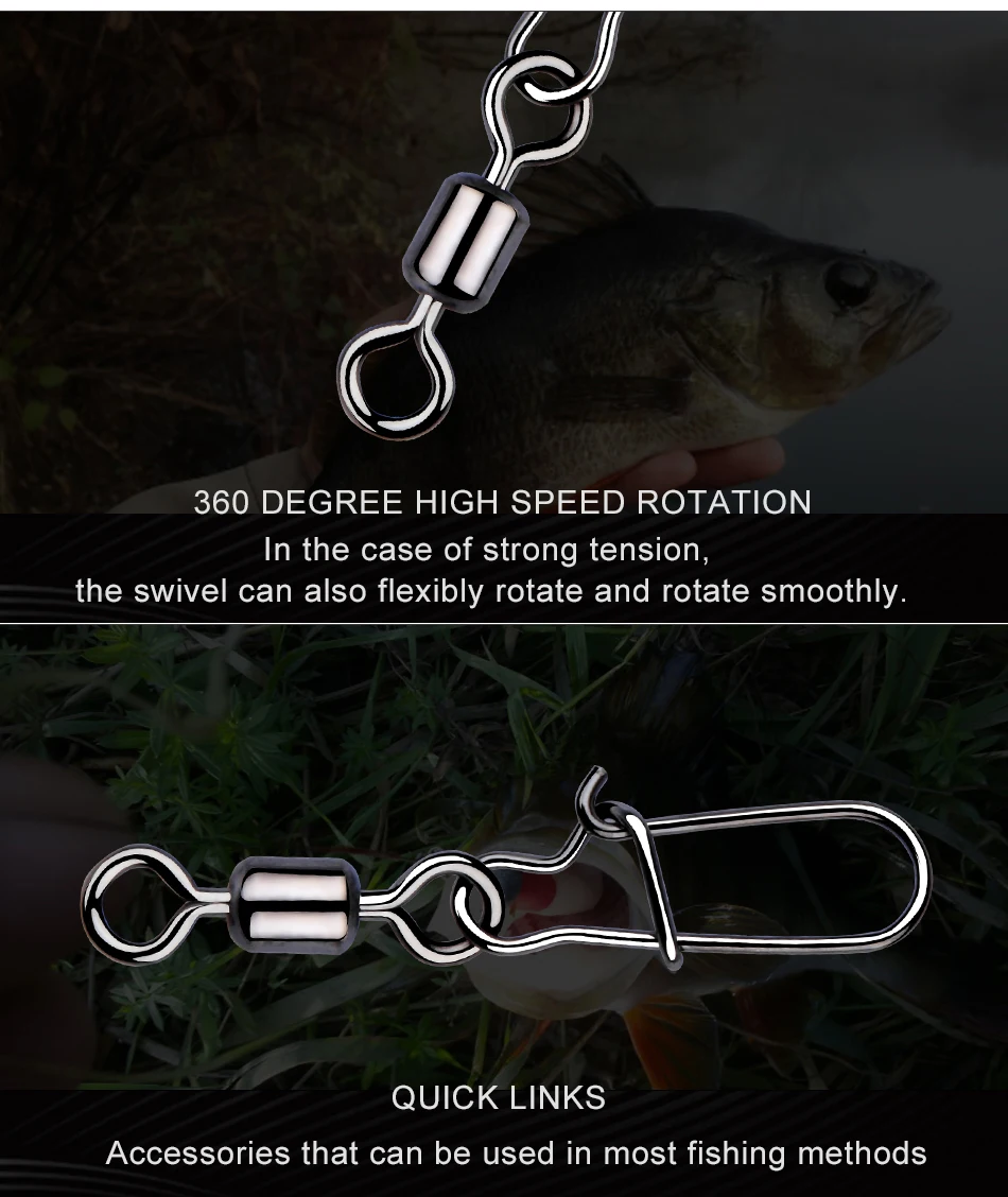 MEREDITH, 50 шт.рыбалка Рыболовные Аксессуары для ловли щуки, соединительный штифт, подшипник, поворотный шарнир из нержавеющей стали, защелка, рыболовный крючок, приманка, вертлюги, снасти джиголовки для рыбалки