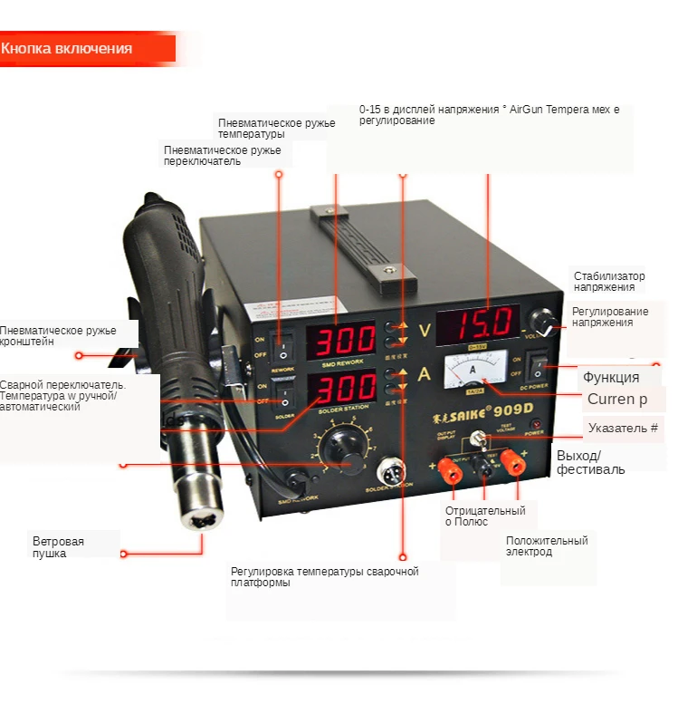 Паяльник Saike 909d, пистолет с горячим воздухом
