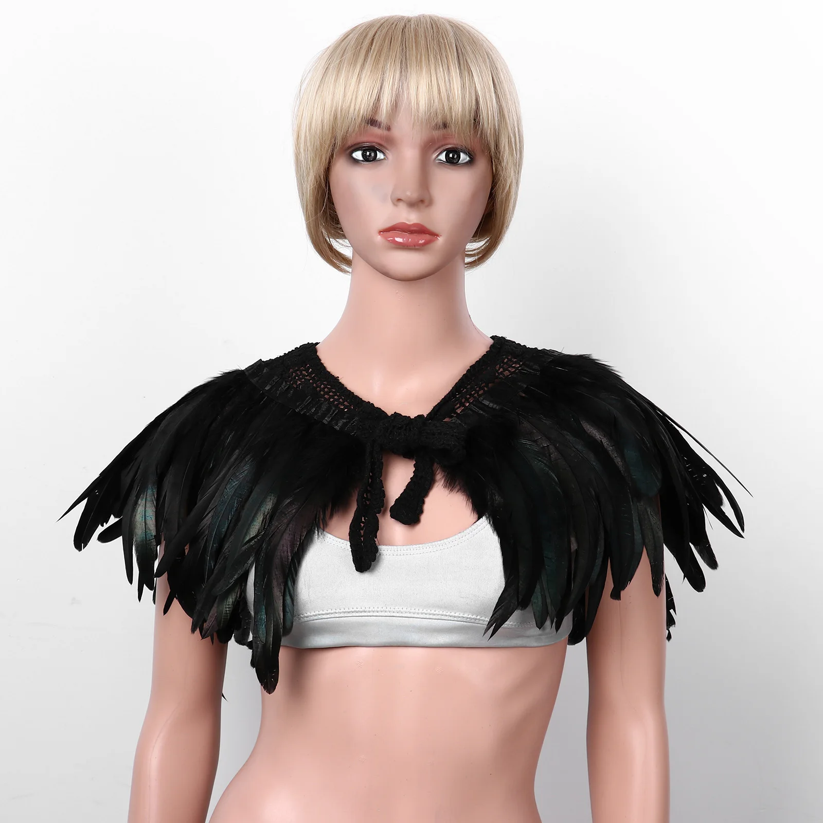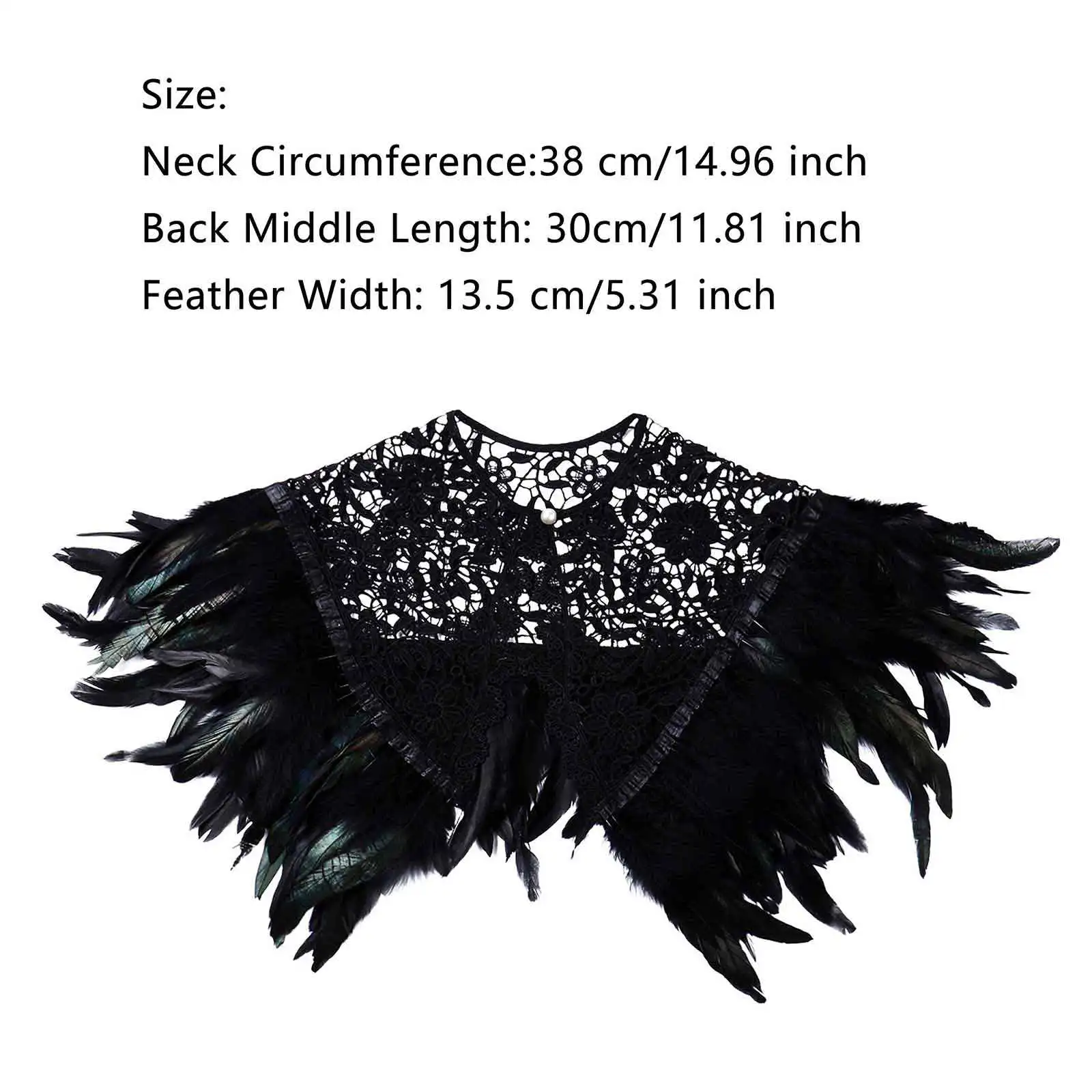 Особенности:Викторианская шаль из натуральных перьев, шаль, накидка на плечо, готический воротник с кружевным галстуком для женщин.Кружевной платок, украшен отделкой из черно-металлического зеленого петуха перьями.Самозавязка через кружевную планку, расширенную от воротника.Стильное коктейльное перо петуха, сделает вас выглядеть очень модно и элегантно.Идеально подходит для Хэллоуина, маскарадных вечеринок, костюмированных вечеринок, Рождества, панковской вечеринки, маскарадной вечевечерние, представления или любых особых случаев.