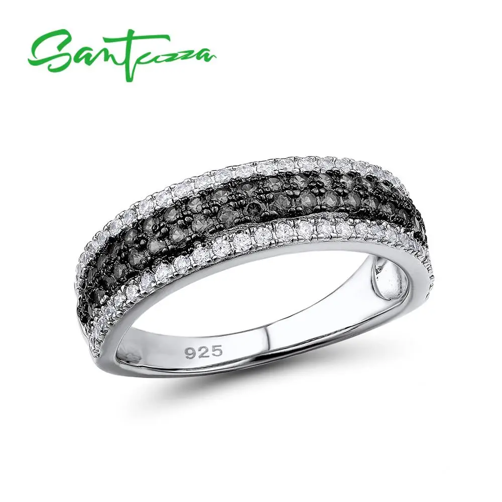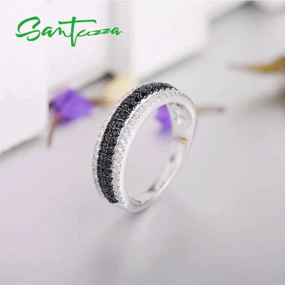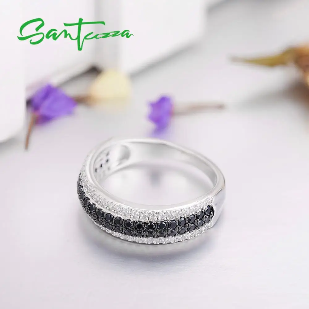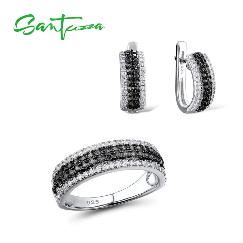 Женский комплект украшений SANTUZZA, кольцо и серьги из серебра 925 пробы с черной шпинелью и белыми фианитами