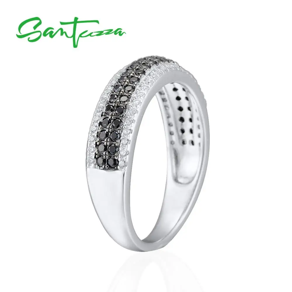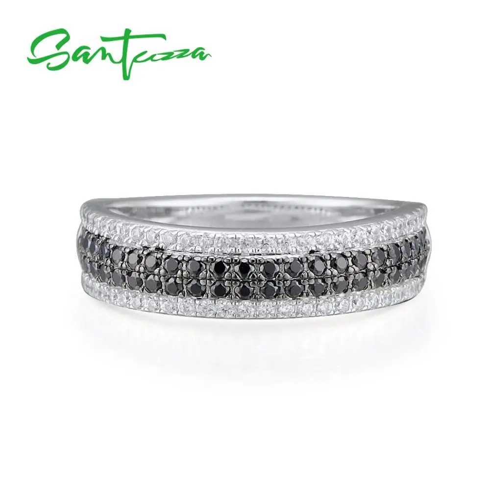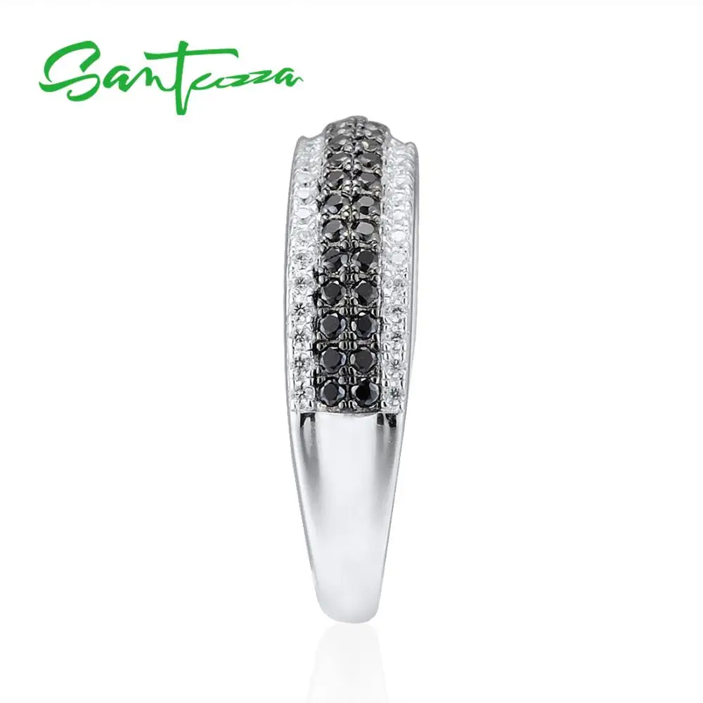 Женское кольцо с натуральным камнем SANTUZZA, 925 пробы Серебряное кольцо с круглым кубическим цирконием и черными камнями
