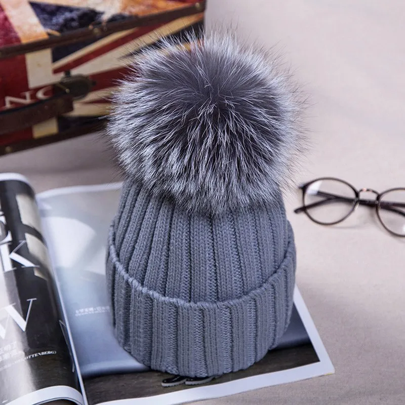 Шапка WZCX с помпоном в полоску, женская, зимняя, однотонная