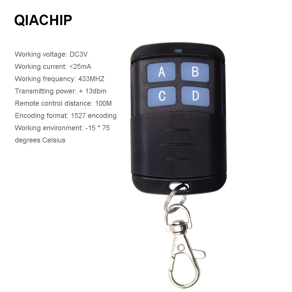 Беспроводной пульт дистанционного управления QIACHIP 433 МГц, Радиочастотное реле, передатчик ключа с 4 кнопками, обучающий код 1527, светильник для ворот, гаражных дверей