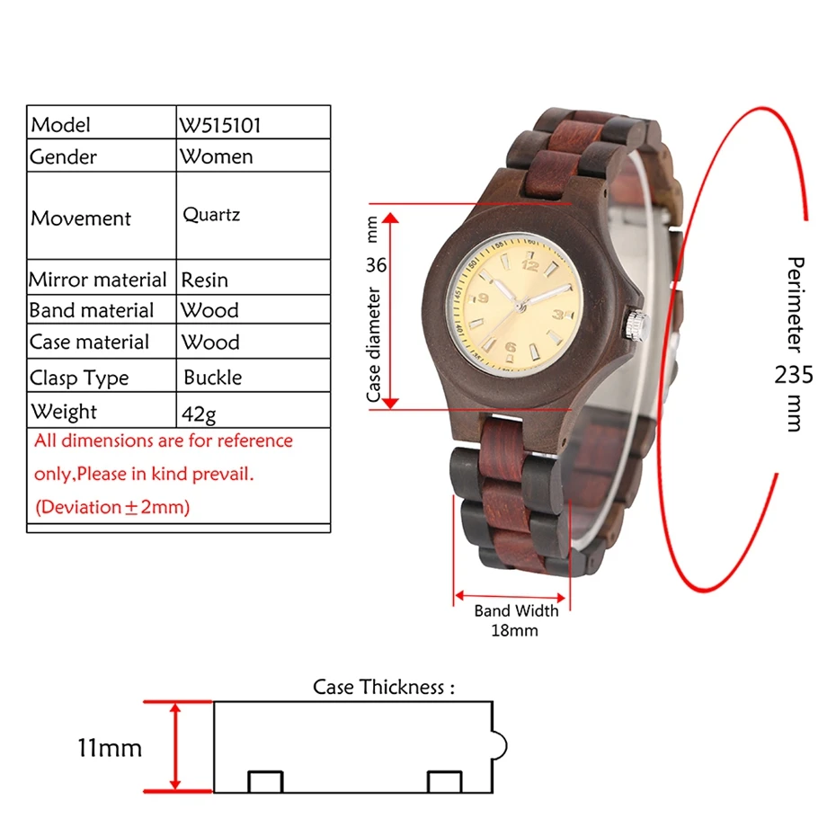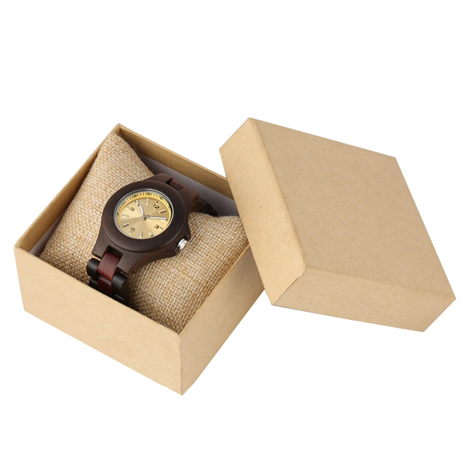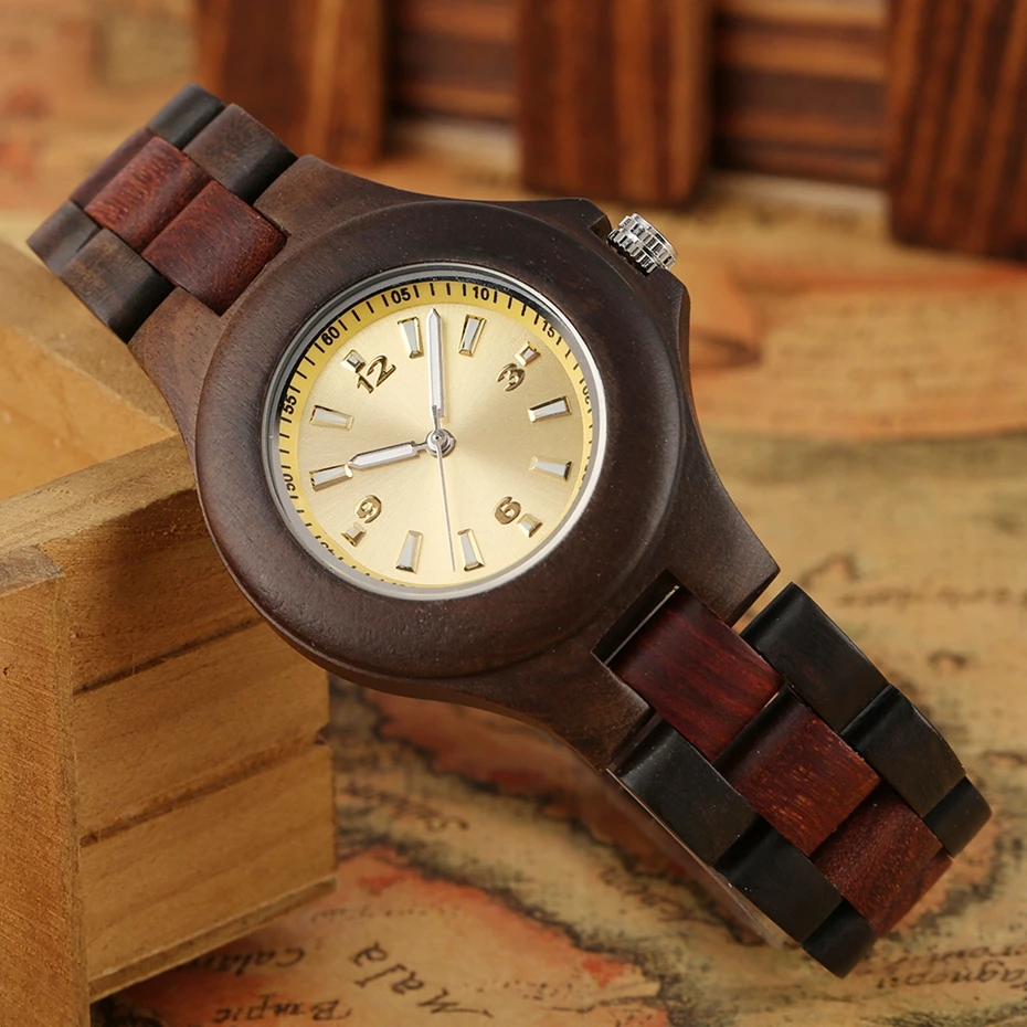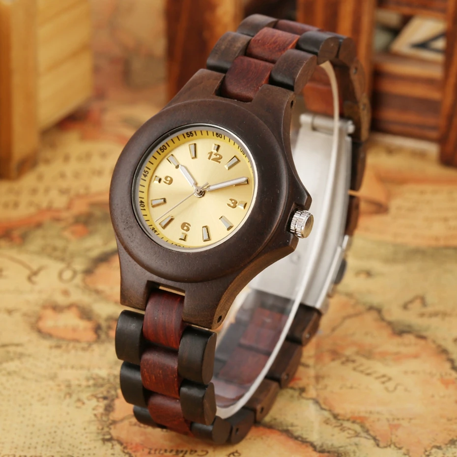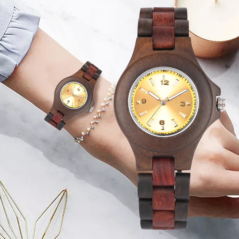 Часы женские деревянные с желтым циферблатом и деревянным ремешком