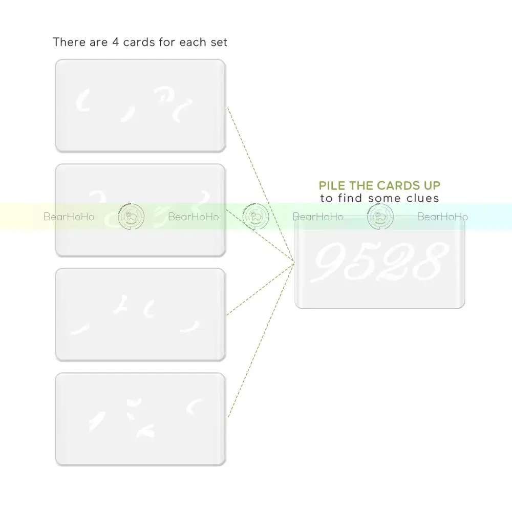 Реквизит для комнаты спасения, акриловые волшебные прозрачные карты для реальной жизни, игра-головоломка, ворс, четыре карты, чтобы получить подсказки, приключения игрока