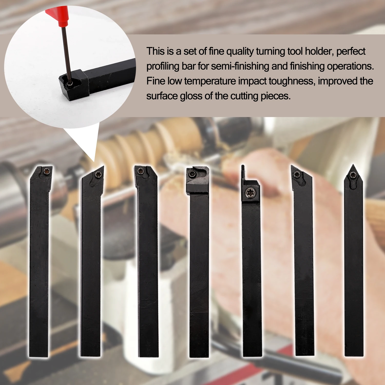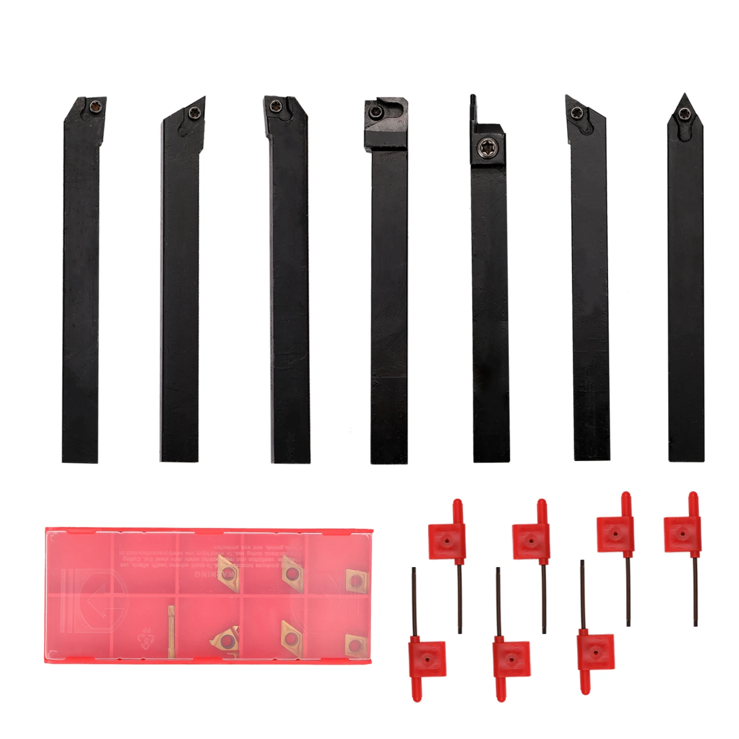 Это набор высококачественных токарных держателей для инструментов, идеальный профилирующий стержень для полуотделочных и отделочных операций. Тонкая прочность и твердость, длительный срок службы. Прекрасная низкотемпературная Ударная вязкость, улучшенный блеск поверхности режущих деталей. Особенности: Профилирующая планка для полуотделочных и отделочных операций. Тонкая прочность и твердость, длительный срок службы. Это может уменьшить стоимость шлифовки инструмента и повысить эффективность резки. Прекрасная низкотемпературная Ударная вязкость, улучшенный блеск поверхности режущих деталей. Тонкая прочность сцепления, ударопрочность и сильное, четкое преимущество скорости при обрезке большого запаса и обработке. Практичная и разнообразная среда обработки даже в очень грязных условиях. Спецификация: Модель: MGEHR1010-2, SER1010H11, SCLCR1010H06, SDJCR1010H07, SDNCN1010H07, SLCL1010H06, SDJCL1010H07 Диаметр хвостовика: 10 мм Общая длина: прибл. 100 мм Материал: металл Цвет хвостовика: черный Вес посылка: 785 г/27,7 унции Посылка: 220*150*44 мм/8,7*2,0*1,74 дюйма Комплектация: 7 * хвостовик 7 * лезвие Отвертка 7 шт.