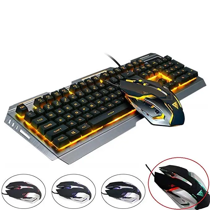 Клавиатура V1, мышь, комбинированная геймерская Проводная, светодиодный, с подсветкой, мультимедиа, эргономичная, металлическая, Pro, игровая клавиатура + 6 кнопок, мышь для ПК