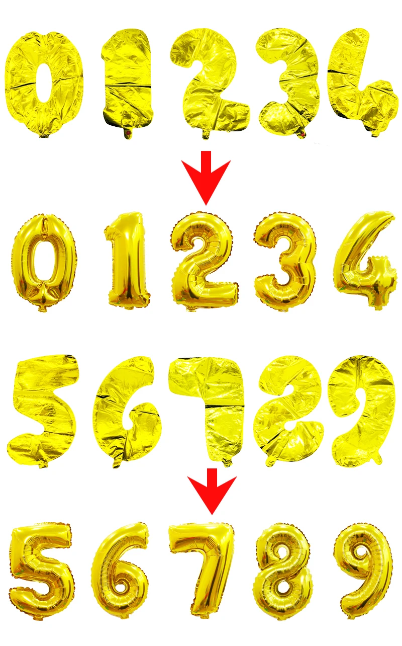 1. Шары с цифрами самозапечатываются и могут надуваться гелием или воздухом.