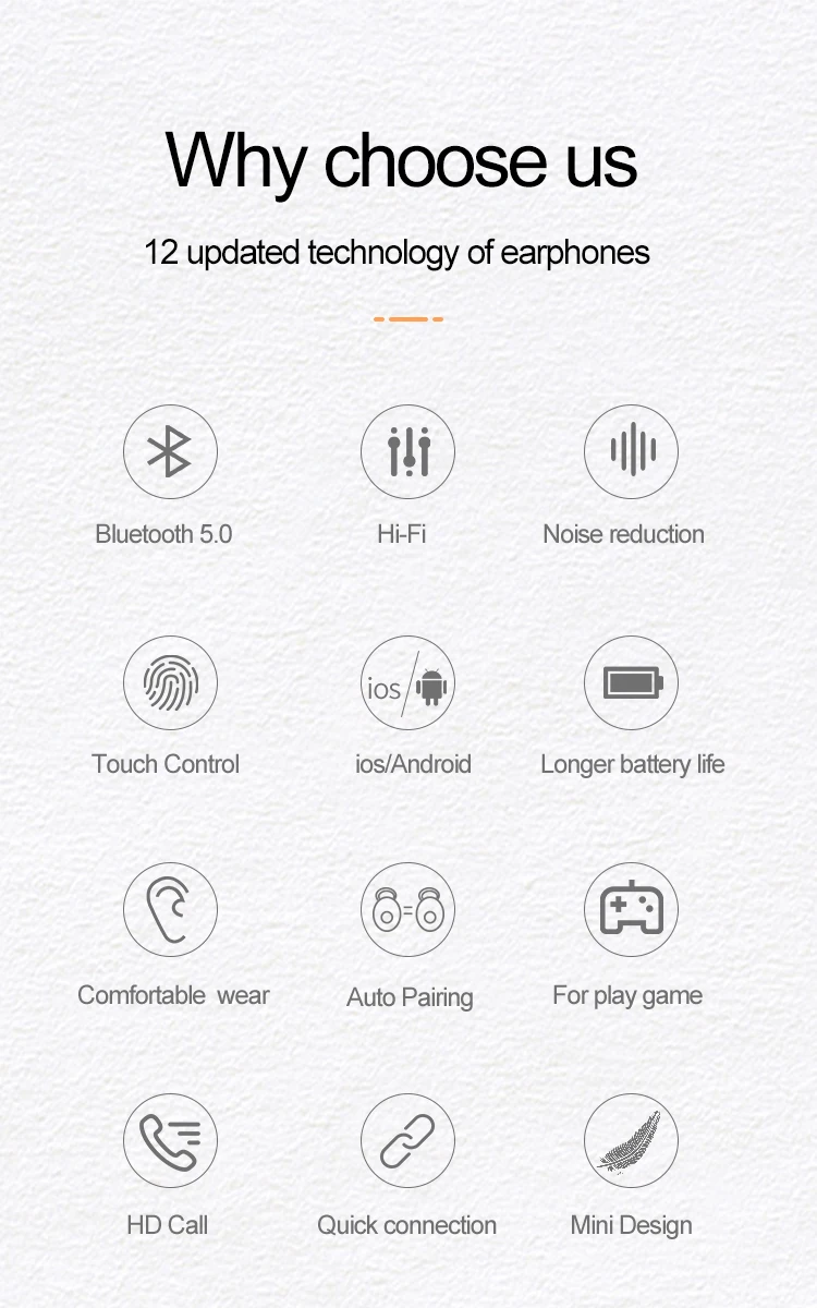 Беспроводные наушники Bluetooth 5,0 TWS, Hi-Fi мини-наушники-вкладыши, спортивные наушники для бега, поддержка телефонов на iOSAndroid, HD-звонки