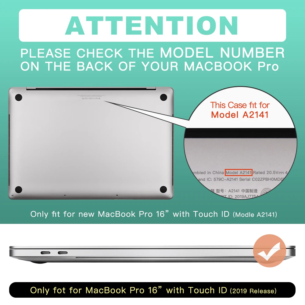 A, чехол совместим только с Macbook Pro 16 дюймов выпуска 2019 с сенсорной панелью и Touch ID Retina дисплей Модель: A2141.