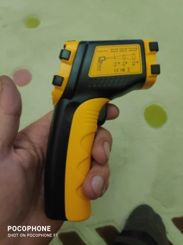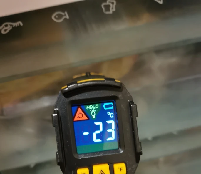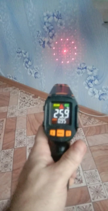 Хороший термометр. Показания вроде близки к истине. Чем ближе к измеряемому предмету, тем точнее показания. На 1-м фото температура трубы отопления. В морозилке показал - 23 градуса (последнее фото). Доставка 5 дней.