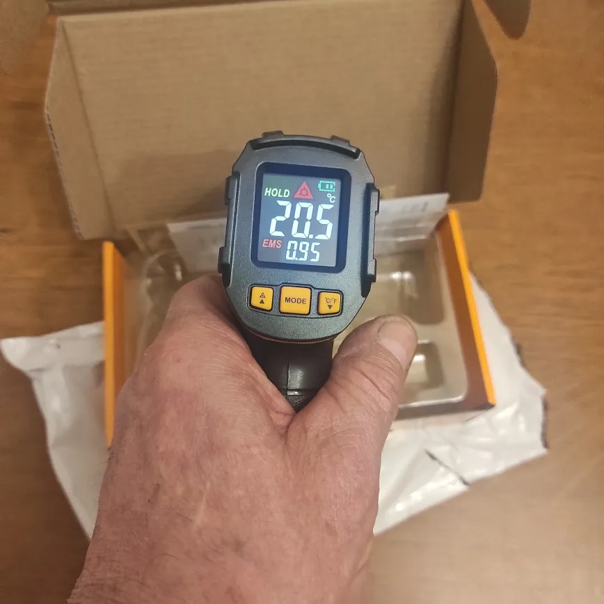 Своевременная отправка из Китая, как предположительный результат. Достаточно легкий, выглядит очень пластицимо при первом ударе. Пожалуйста, сообщите, какой требуется 2 батареи ministilo AAA, нет в упаковке, несмотря на то, что они предоставлены в коробке. Помимо первого воздействия, что касается операции, кажется достаточно надежным, просто Отрегулируйте правильную стоимость EMS в соответствии с материалом. Фокусируясь на термометре, потребляя одинаковое значение. Точно, что это не точный термометр, а экологичный термометр, но все еще более надежный, чем лазерное обнаружение, тогда я бы сказал, что он имеет хорошую точность термометра лазера, по крайней мере при температуре окружающей среды. У меня нет возможности проверить точность экстремальных температур, но для чего это стоит, если нет запроса высокой точности, это отличный выбор.