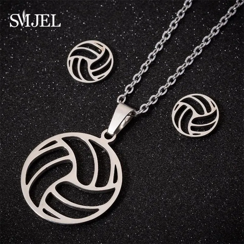 SMJEL Ювелирные наборы из нержавеющей стали геометрические ожерелья в виде баскетбольного сердца с полыми звездами для женщин милые серьги в форме кошки серьги