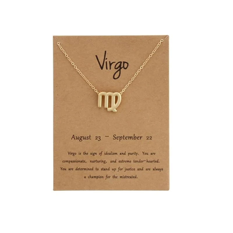Ожерелье с 12 созвездиями зодиака, колье с открыткой желаний, колье золотого цвета со знаком звезды, ожерелье для женщин, Лео, весы, близнецы, украшения для родов