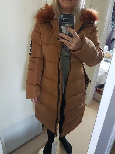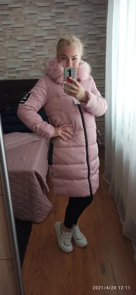 Доставка быстрая. Цвет красивый, фото не передаёт. Мех на капюшоне приличный, распушился хорошо. Сам пуховик тонкий, думаю до -10 будет нормально. Ниточки торчат. Пришел с очень сильным запахом. Надеюсь, выветрится на балконе. Продавец общительный. Была небольшая задержка с отправкой товара, но продавец информировал каждый день.