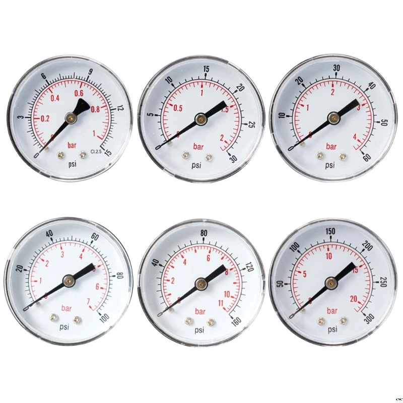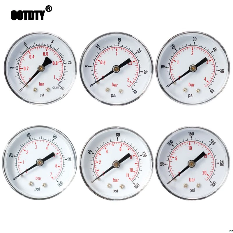 Осевой манометр 52 мм гидравлический манометр 1/8 BSPT горизонтальный 0/15,30,60, 100160300 PSI & бар крепление на заднюю панель