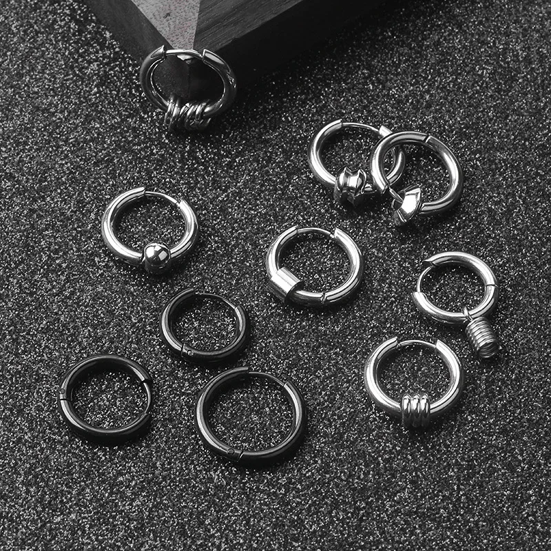 Серьги-кольца из нержавеющей стали для пирсинга хрящевых тканей, простые маленькие ювелирные украшения для мужчин и женщин, серебристого и черного цвета, 1 шт.