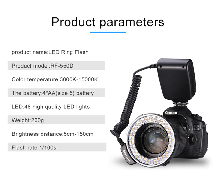 Кольцевой светодиодный фонарик MAMEN Macro, лампа для цифровой зеркальной фотокамеры Sony Canon Nikon Fujifilm Olympus Pentax, комплект ламп с 48 светодиодами