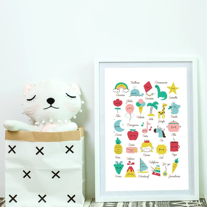 Испанский детский алфавитный принт, учебный плакат, декор для детской стены, подарок для маленьких девочек и мальчиков, Картина на холсте