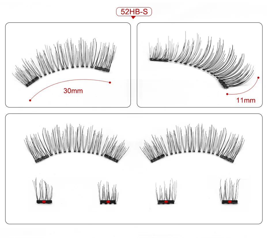 Посылка: 1 акриловая коробка, 1 пара накладных ресниц (2/3 магнитов) ,1 пинцет