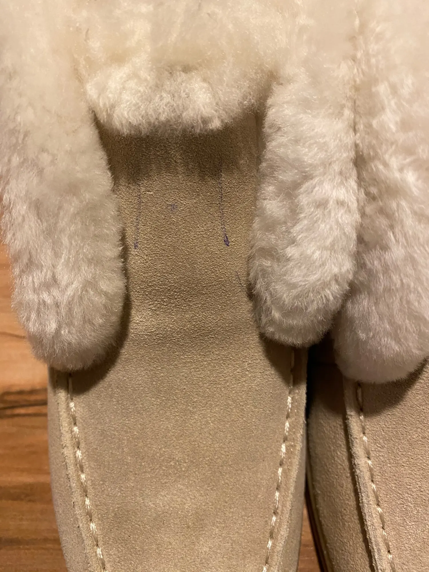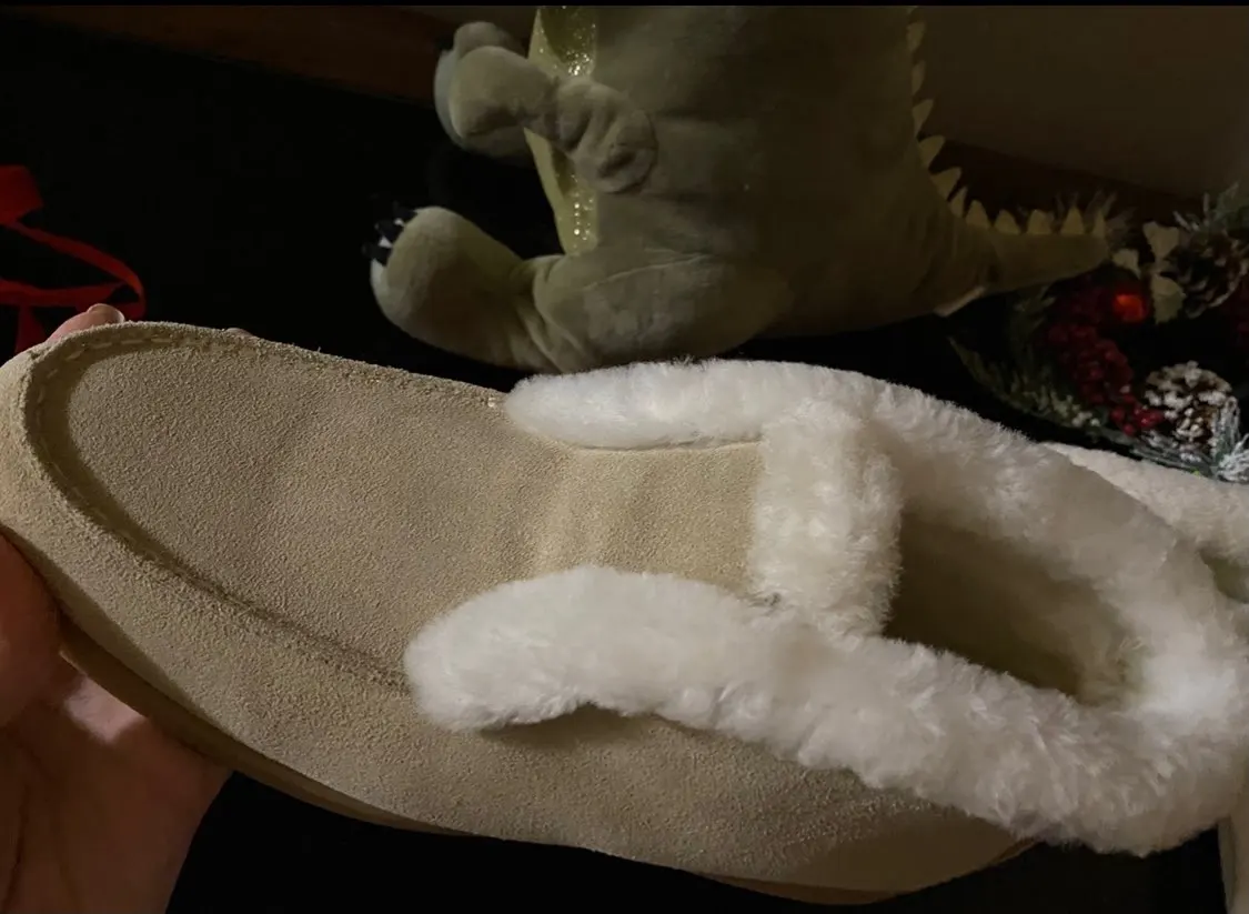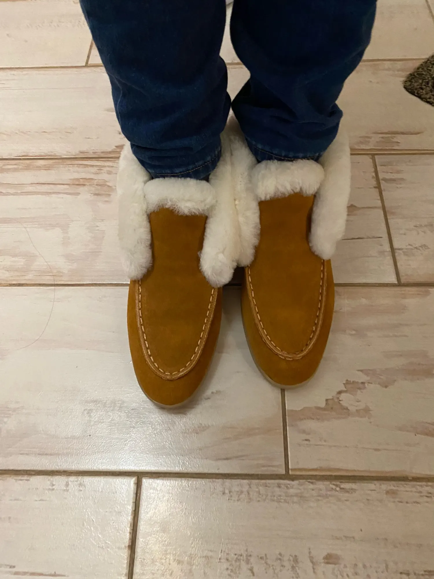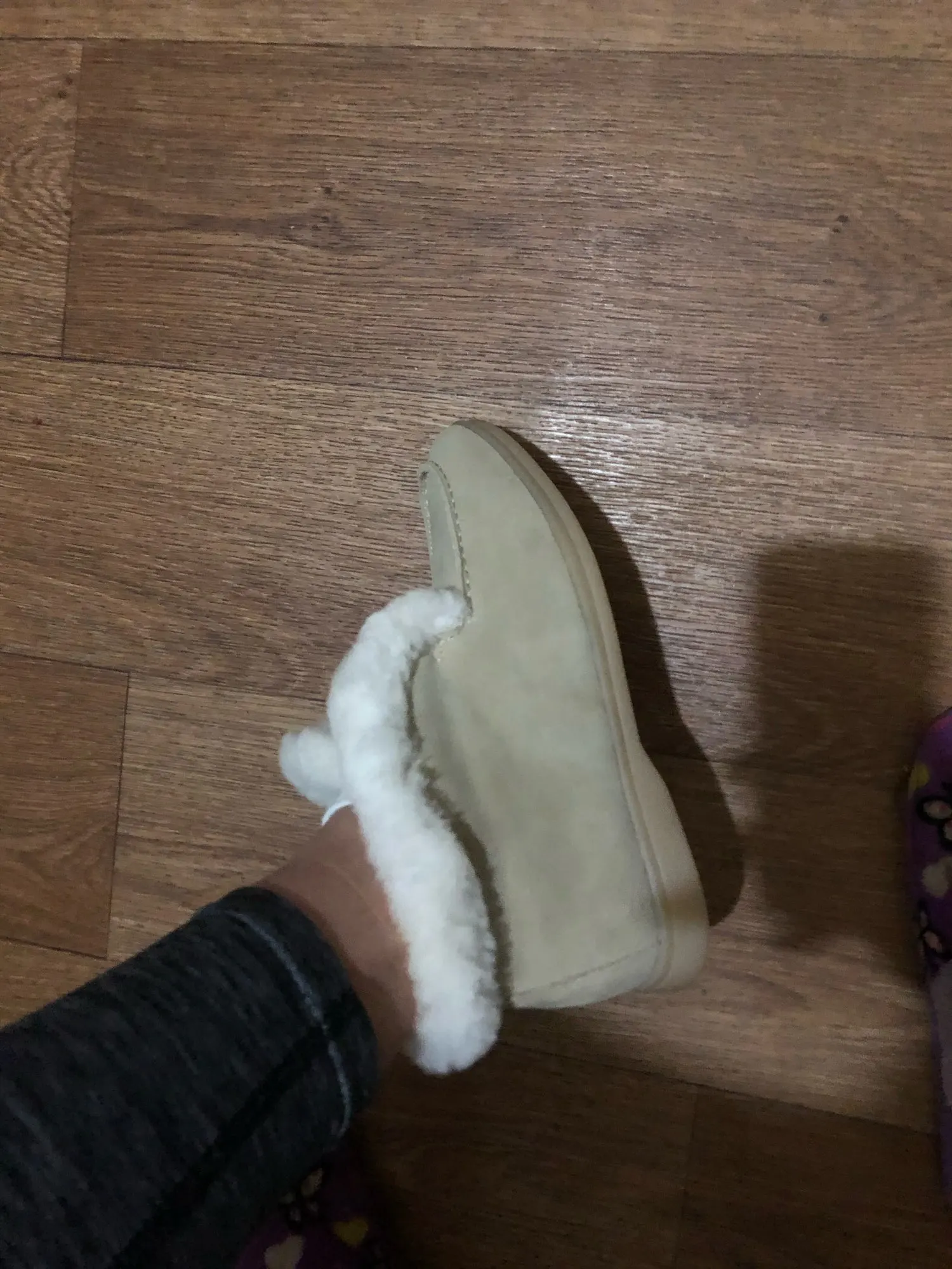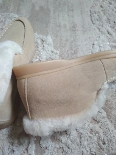 очень рада покупкой. посылка пришла быстро, запакована очень хорошо, ничего не повредилось. Есть лёгкий запах клея, но он выветривается быстро. это настоящая замша и овчинка, тёплые. на мой 39, заказала 40- подошли хорошо. могу только рекомендовать