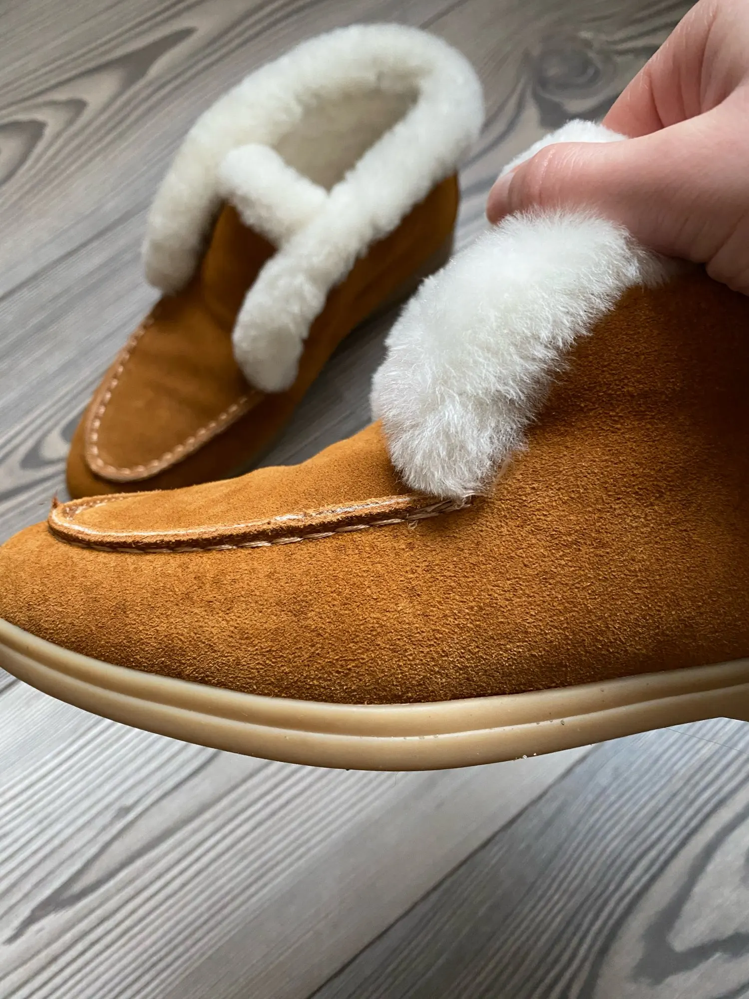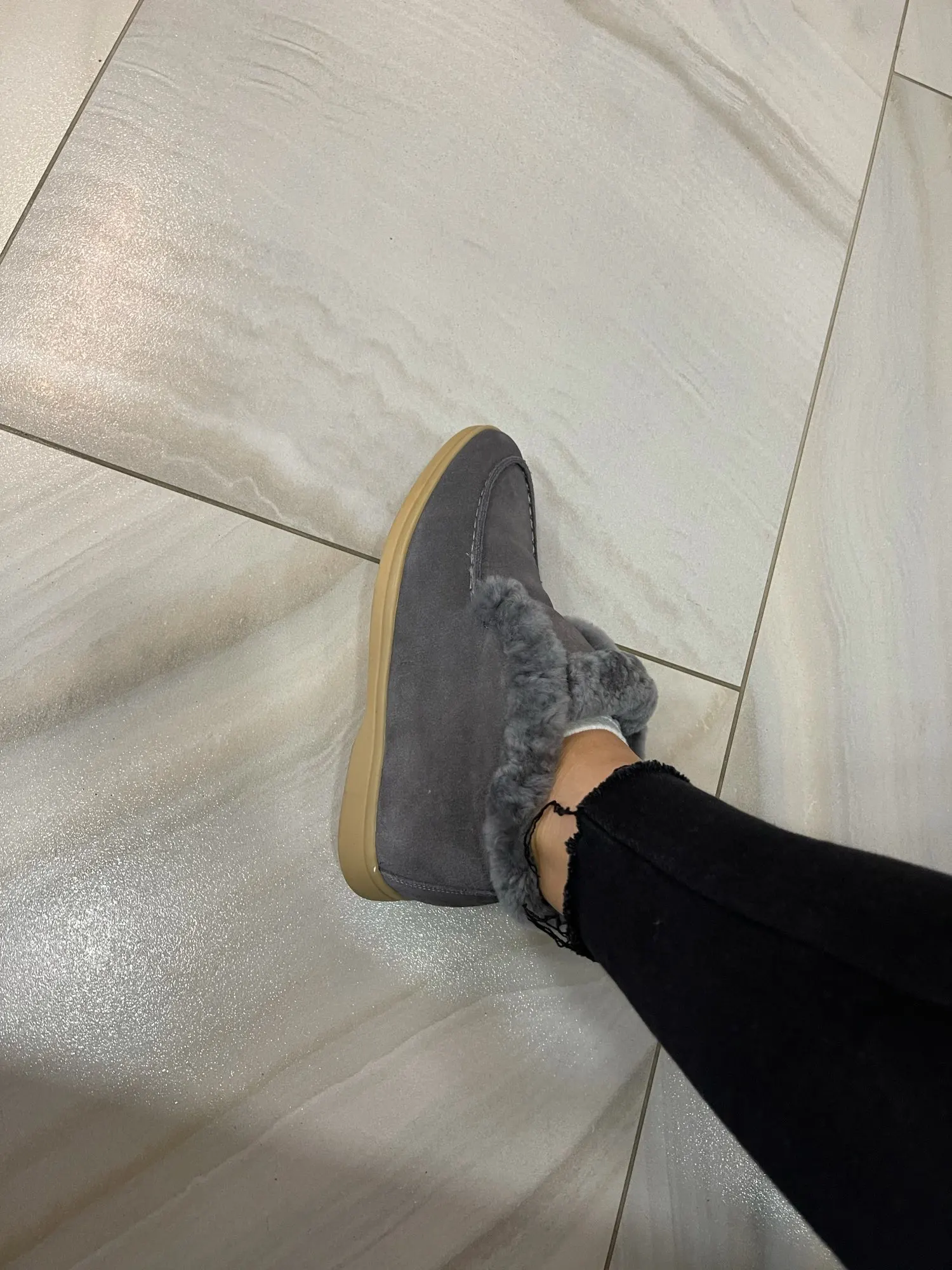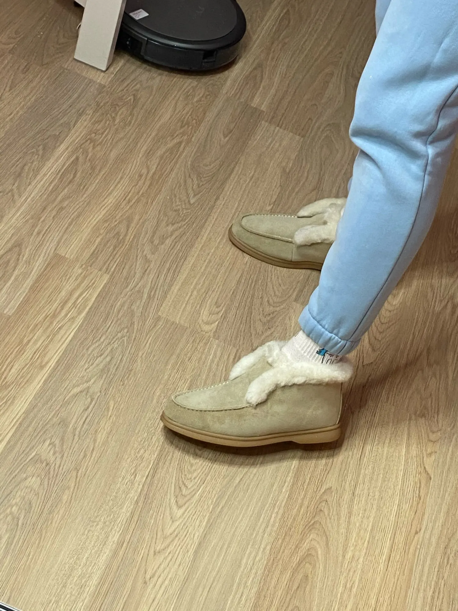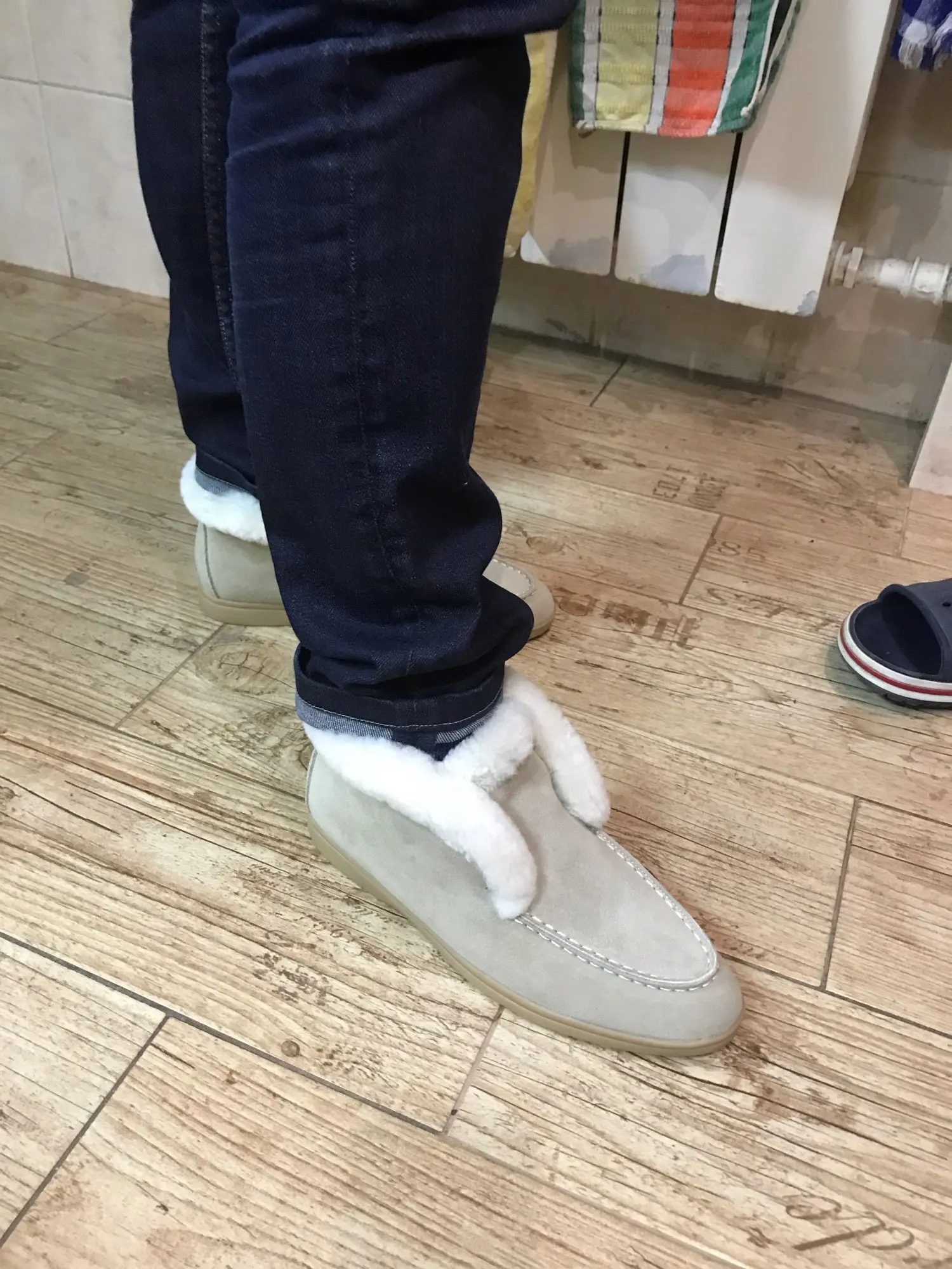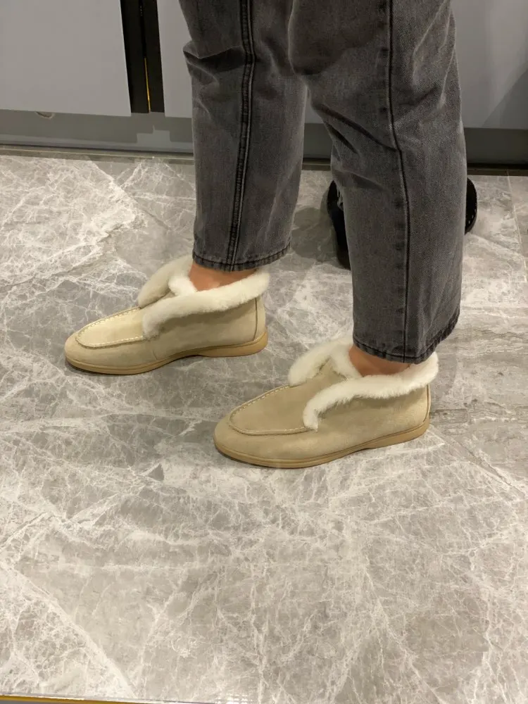 женские лоферы на меху;loro piano shoes;Ботильоны; ботинки из коровьей замши; женские лоферы на меху;теплые зимние ботинки на натуральном меху; женские зимние ботинки без застежки