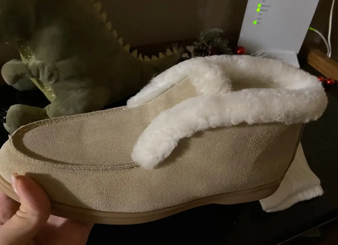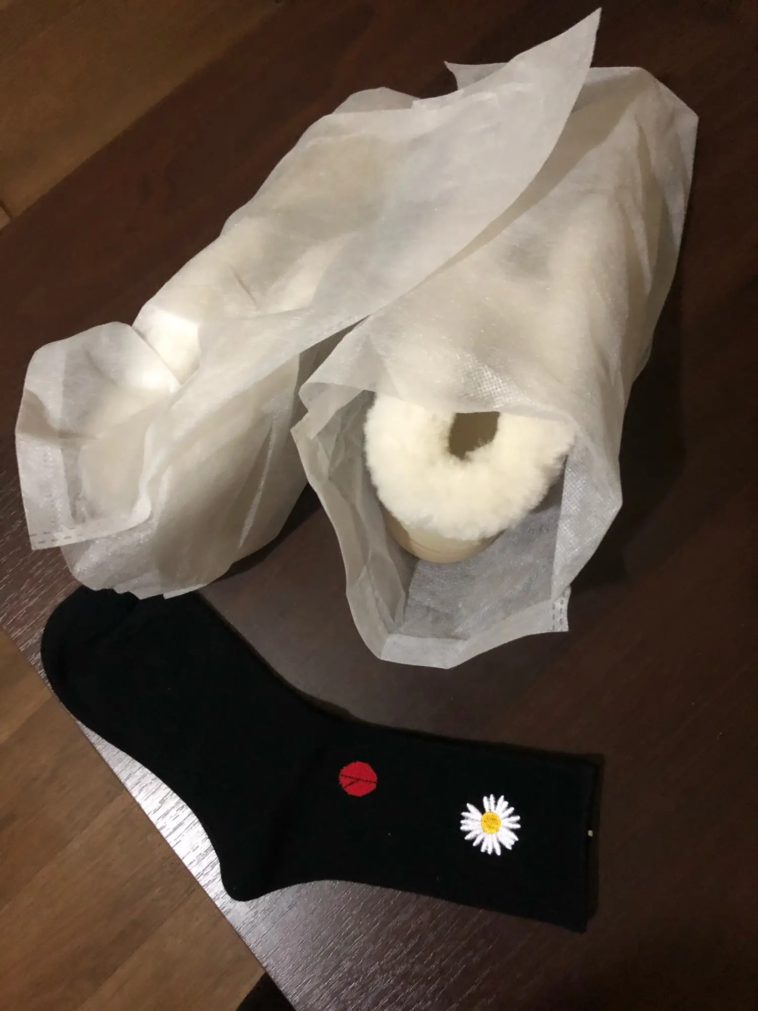 Вот настало время и мне поделиться своим отзывом о этих ботиночках. Заказ был сделан 5.12, получила 21.12. Самая моя быстрая доставка с Али. Ну что сказать, полный восторг. Изначально хотела купить такие в 12Stories, но то нет в наличии моего размера, то нет 13 тыщ на карте. Решила рискнуть и попробовать заказать подобные здесь. Начиталась отзывов по поводу несоответствия размеров. На мой полный 40 взяла 41. Подошёл отлично с обычным носком. На улице ещё не носила, но, думаю, мех ещё примнётся. Ботиночки на узкую ногу, мне это нравится, так как на моей лапе 40 размера они смотрятся аккуратно. Они полностью натуральные, замша хорошего качества. Осталось их только обработать спреем водоотталкивающим как следует и в путь. Покупкой довольна безумно, хотя раньше из обуви тут ничего не заказывала, считая, что обувь и сумки должны быть хорошими, фирменными. С удовольствие закажу в этом же магазине весенний вариант такой модели. Спасибо за носочки продавцу.