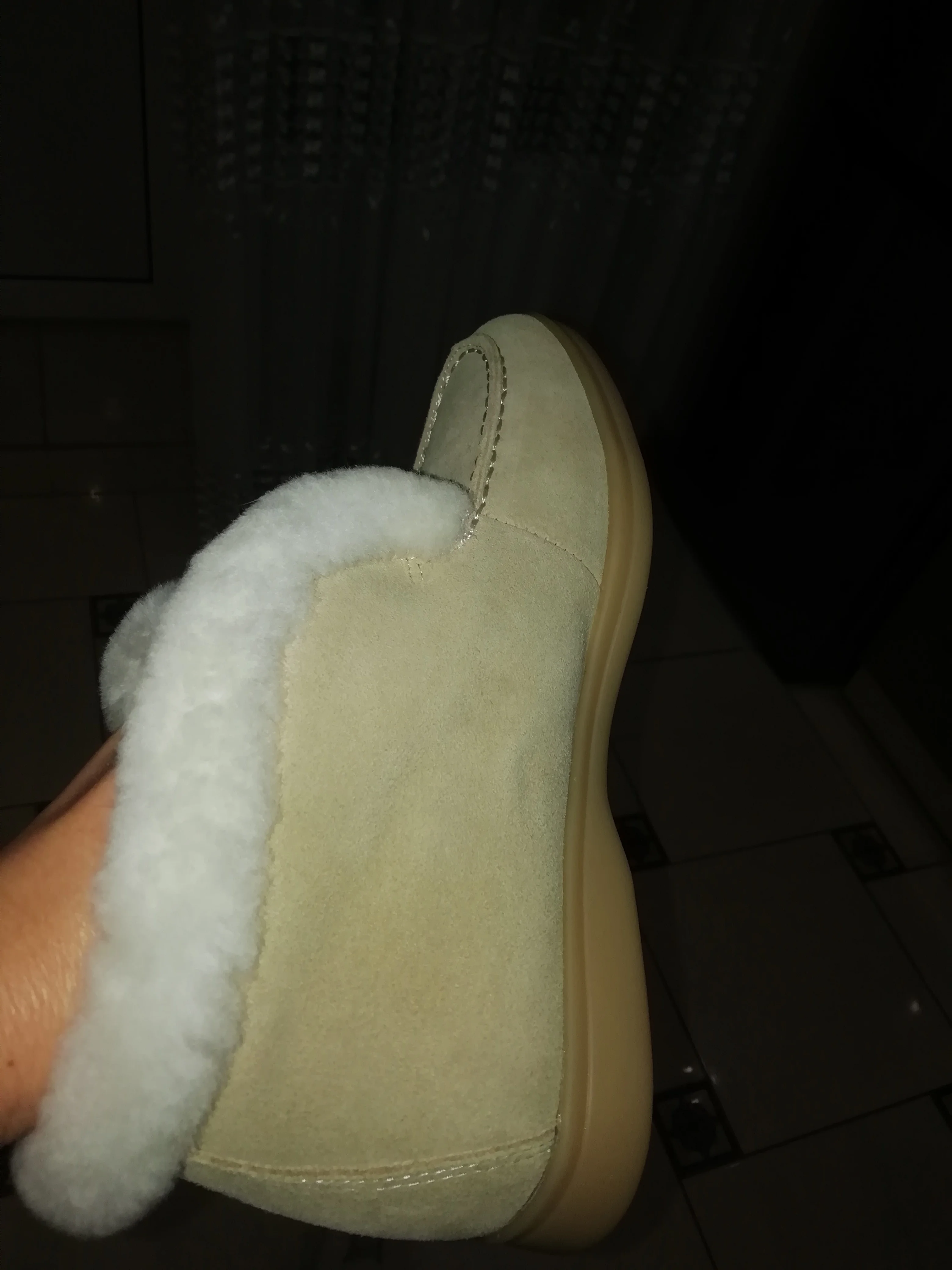 Лоферы понравились, тёплые и натуральные(подпаливали мех), правда очень скользкие, лучше обувать на сухую погоду или когда лежит снег. Остались на коже точки от дождика, нужно было сразу обработать влагозащитой. Посылка пришла в срок доставки на НП через 2 недели( после оплаты не отправляли дня 4, чуть нервничала)) в Киев, хорошо упакована и в подарок продавец положил носочки красивого цвета. Просила чтоб отправил без дефектов пару но на одном ботике мех чем-то запачкан( то ли клей, то ли краска). На 23см(36р) заказала 37 и они оказались в самый раз. К покупке рекомендую, но в след году хочу взять со шнуровками, кажется они более собрано выглядят.