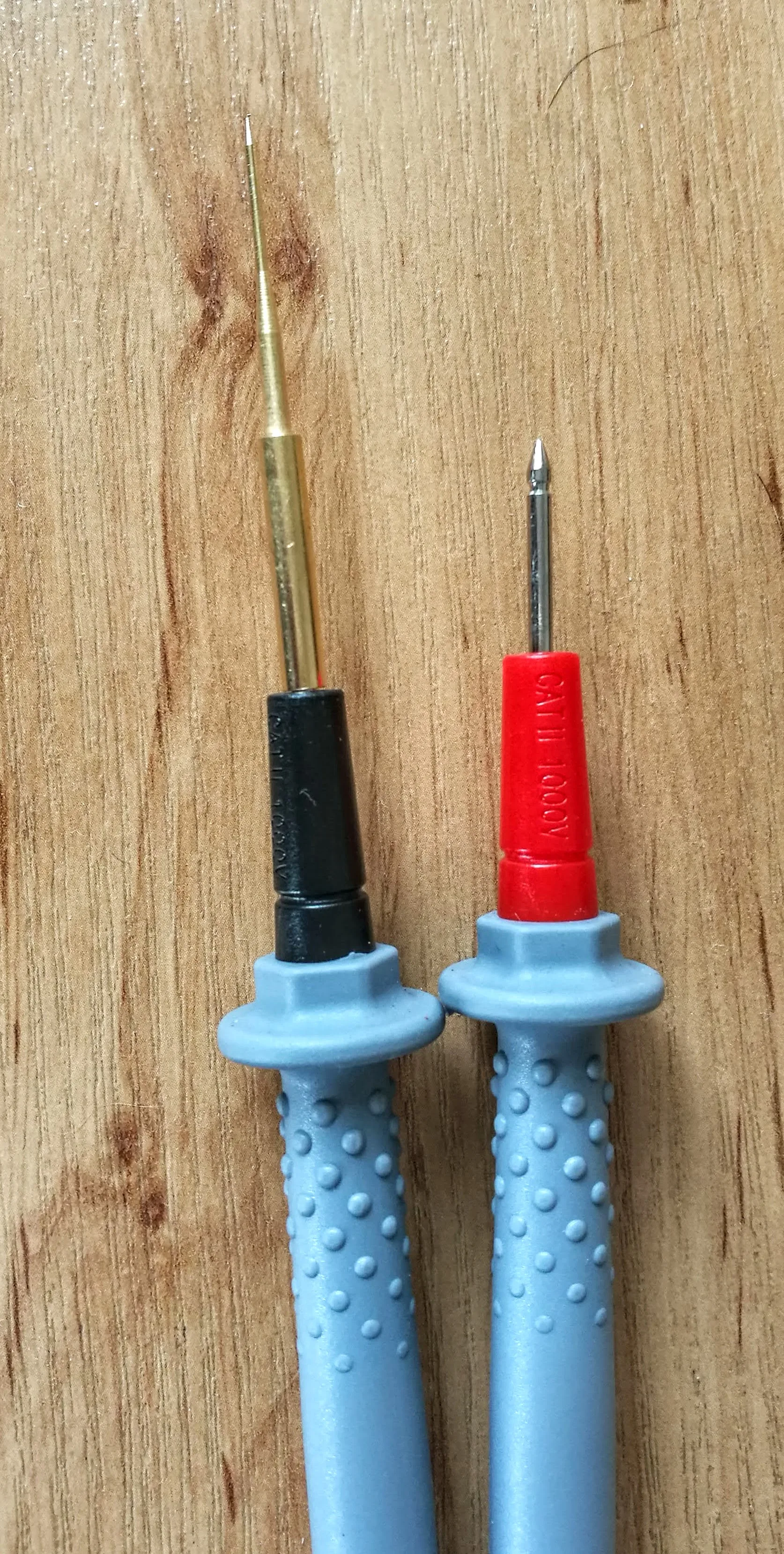 Дошли за 10 дней. Очень мягкие. Не магнитятся. Сопротивление красного 0.03 Ом, черного 0.02 Ом (измерено милиомметром). С надетой иголочкой 0.04 Ом. Иголочки надеваются плотно. Размер иголочек довольно внушительный. Облоя нет. Закрыты защитными колпачками. Отличные щупы!