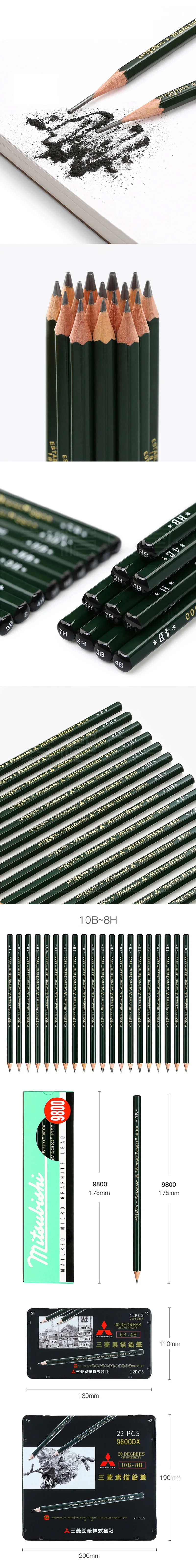 Карандаш UNI MITSUBISHI 1222, 9800 палочек, профессиональный карандаш для рисования скетчей