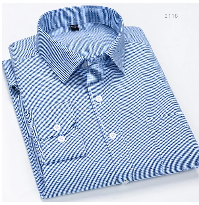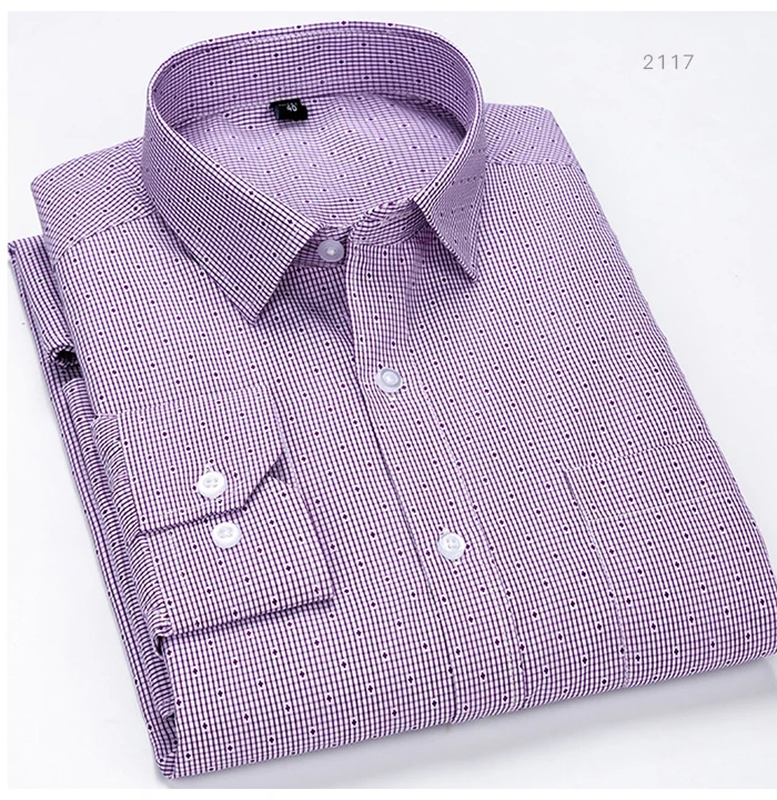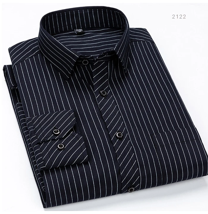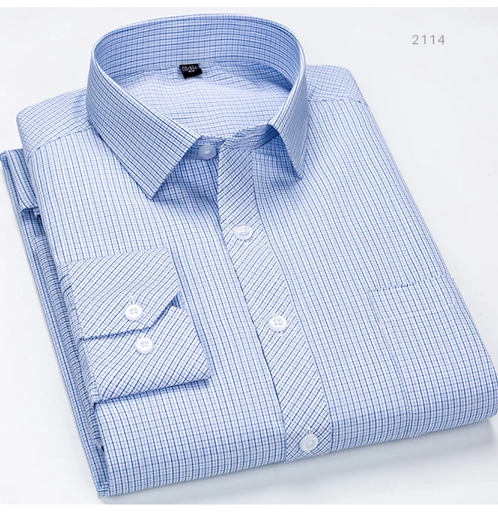 Рубашка мужская классическая, в клеткуполоску, с одним накладным карманом, длинными рукавами