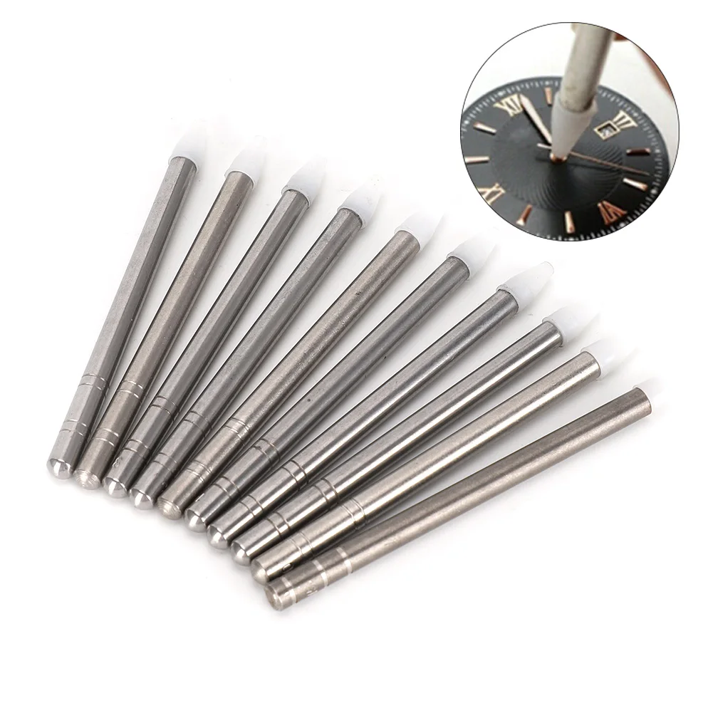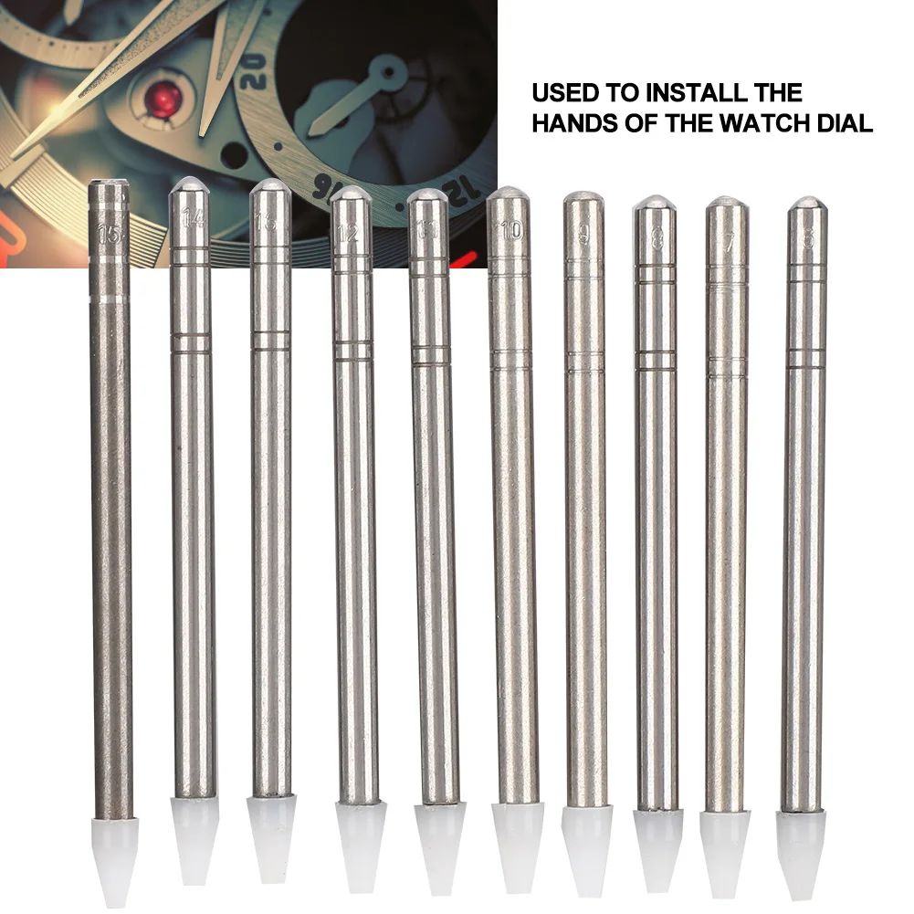 10 шт. часы ручной пресс для толкатель монтажный комплект Сталь Пластик циферблате иглы установка, ремонт инструмента аксессуар для часовщика, р-р 6-15 мм