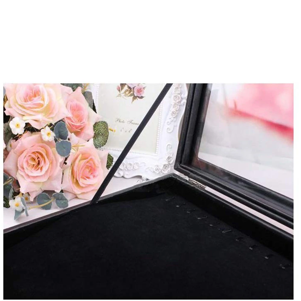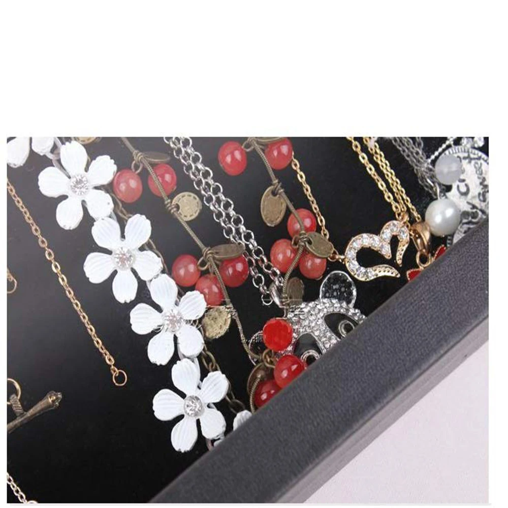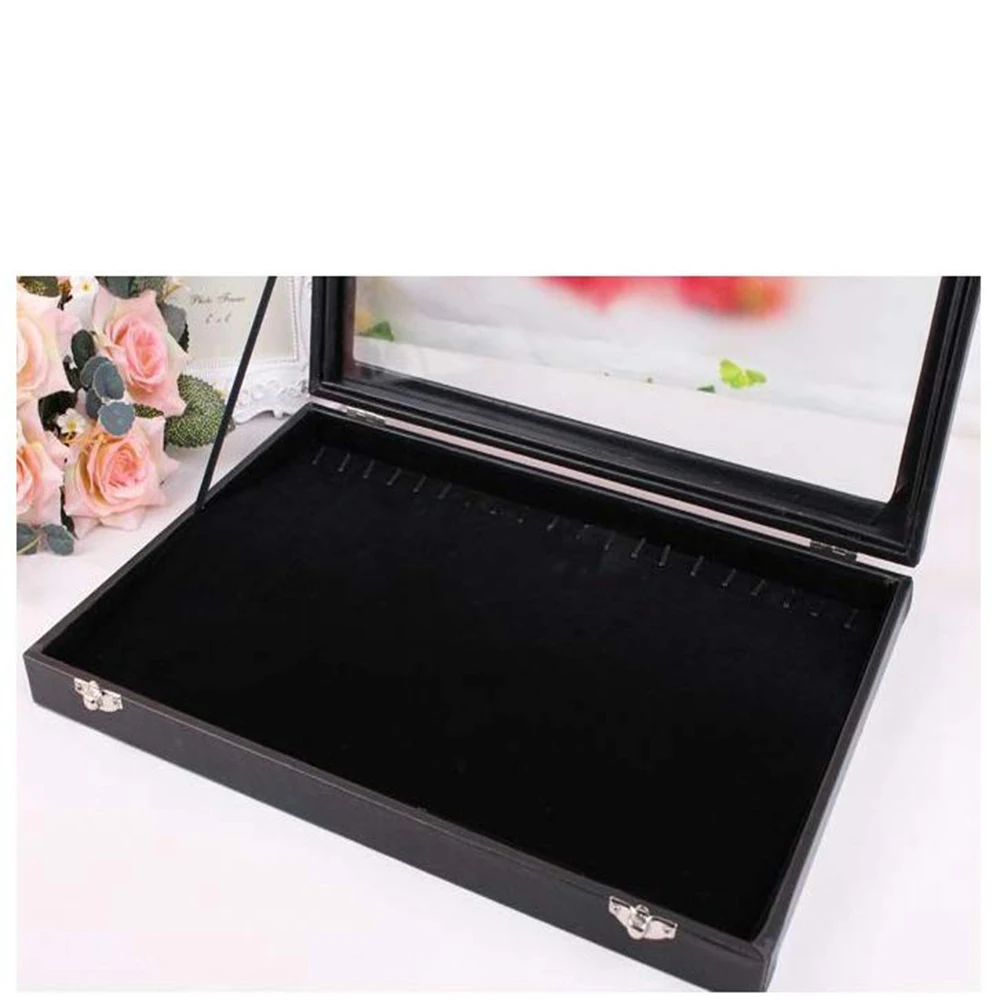 Контейнер для хранения ювелирных украшений, Штабелируемый стеклянный поддон с замком, черные бархатные коробочки-держатели для ожерелий, 20 Крючки для ожерелий