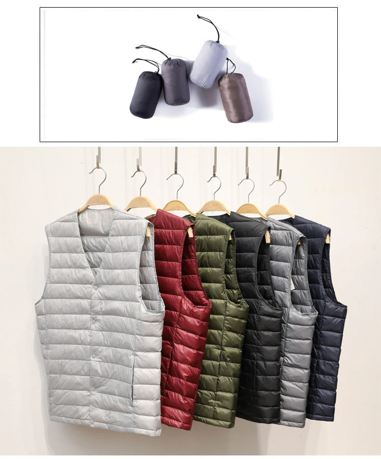 Мужской светильник пуховой жилет Schinteon, повседневный жилет, куртка на белом утином пуху, с V-образным вырезом, без рукавов, с подкладкой, для весны и осени