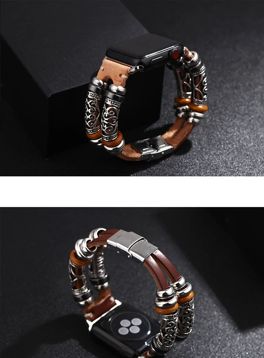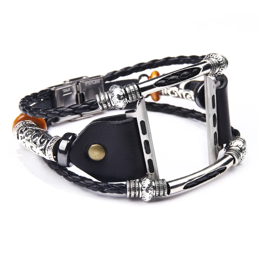 Винтажный кожаный браслет с бусинами Kirykle для Apple Watch серии ...