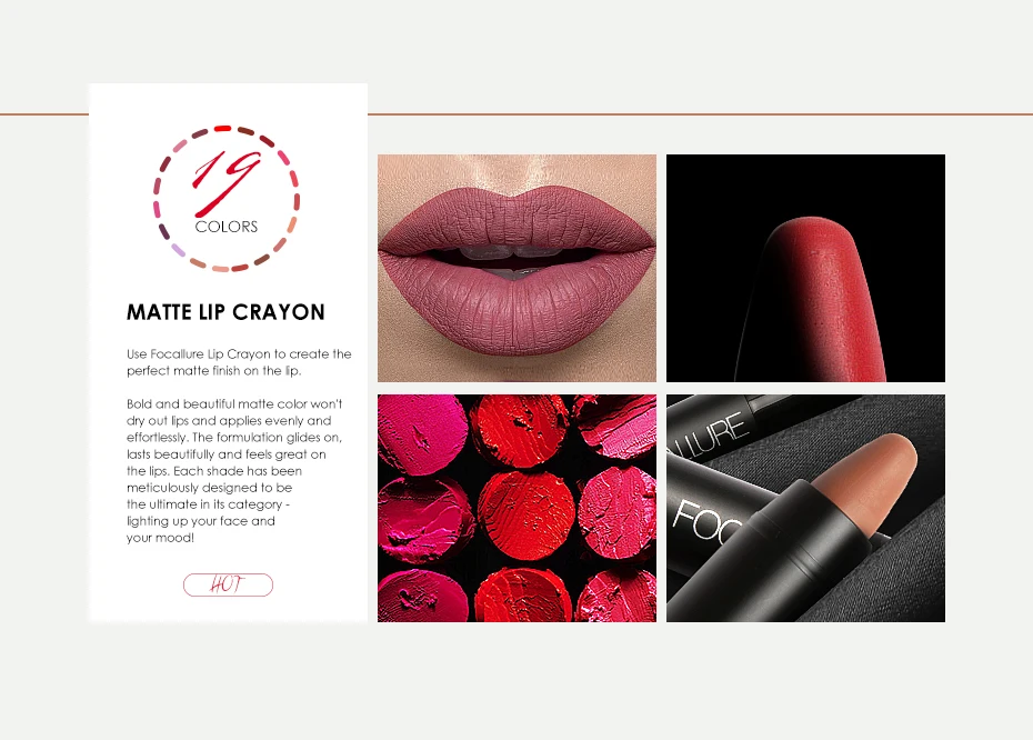 Матовая губная помада FOCALLURE, водостойкая долговечная Профессиональная помада-карандаш для губ телесного цвета, тинт-пигмент, 19 цветов, легко носить