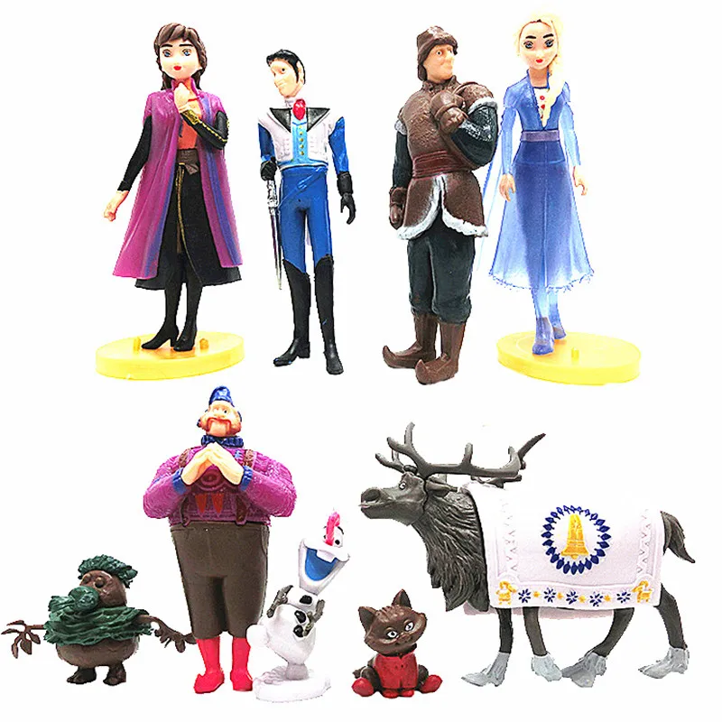 10 шт./компл. Frozen2 фигурки Анна Эльза Фигурки игрушки Снежная королева ПВХ Модель аниме игрушка Ганс коллекция подарок детям игрушки