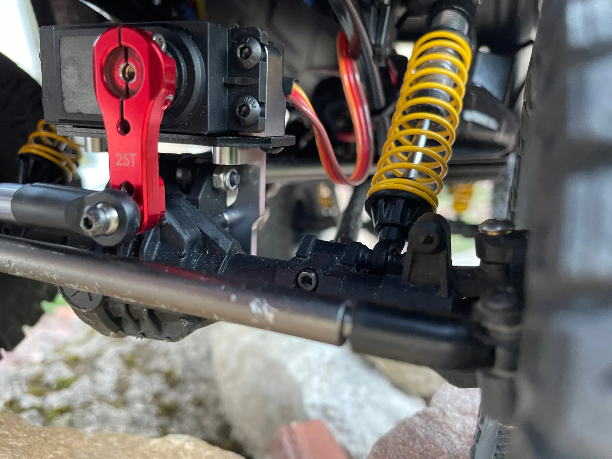 Хорошие материалы, но для scx10 это очень большой. Когда он установлен и подвеска действует, он прилипает к палочке с большими препятствиями. Требуется много высоты пружины, чтобы она хорошо подходила.