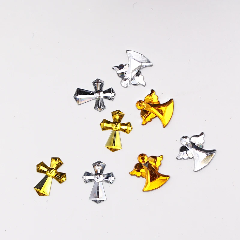 Крест-Ангел акриловый плоский, золотистыйсеребристый, 100 шт.200 шт.