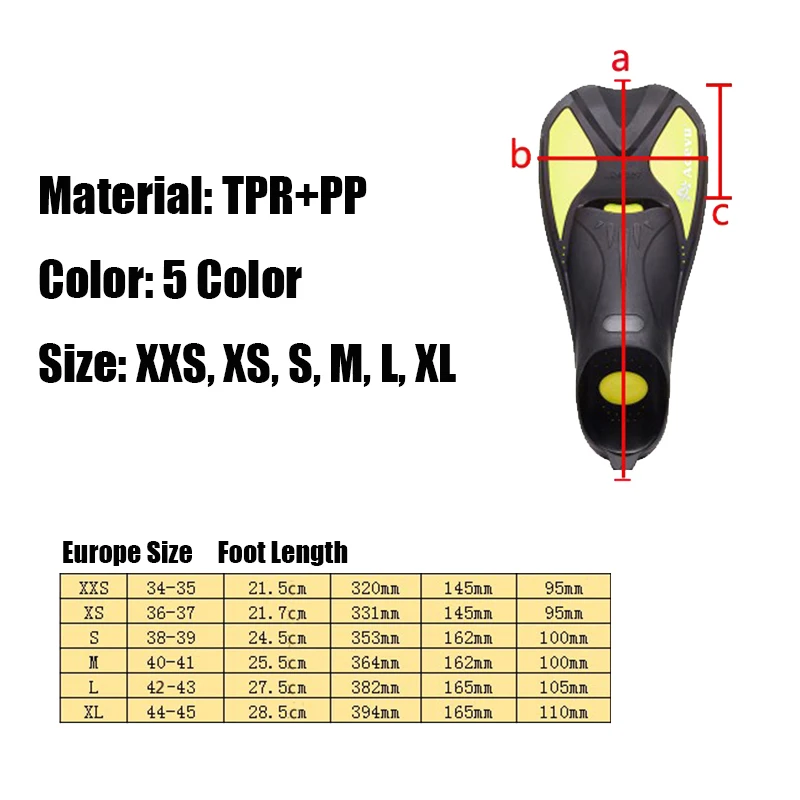 Плавники для подводного плавания для дайвинга, эластичные удобные ласты из термопластичной резины и полипропилена, для водных видов спорта, короткие тренировочные ласты XXSXSSMLXL