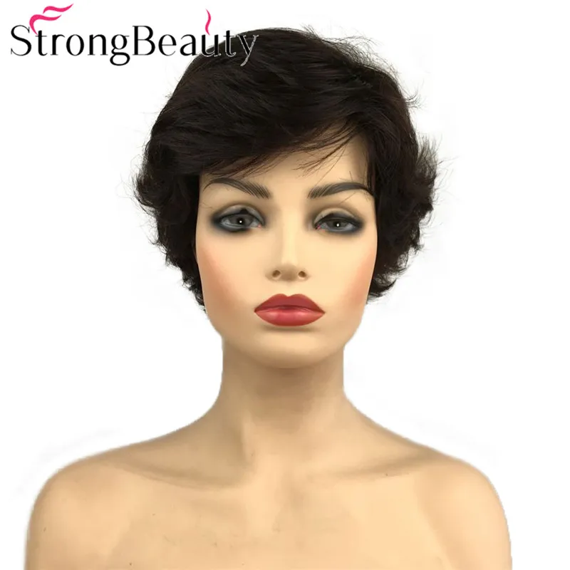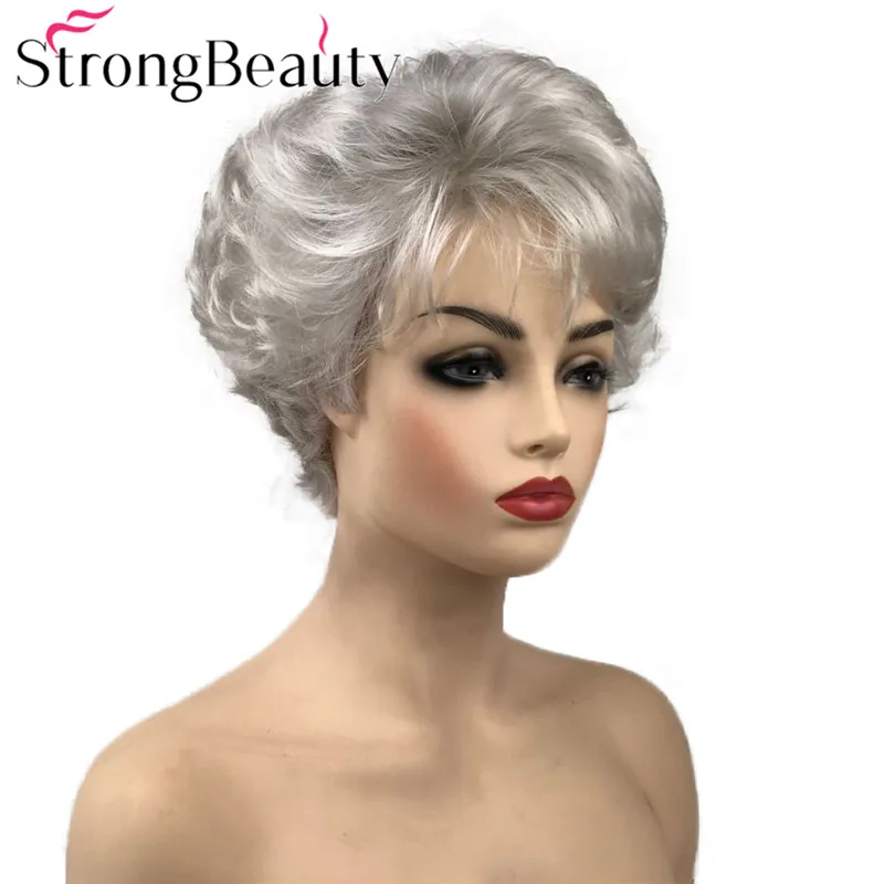 StrongBeauty короткий кудрявый парик синтетические волосы натуральные черные/коричневые/серебристо-серые парики для женщин 6 цветов на выбор