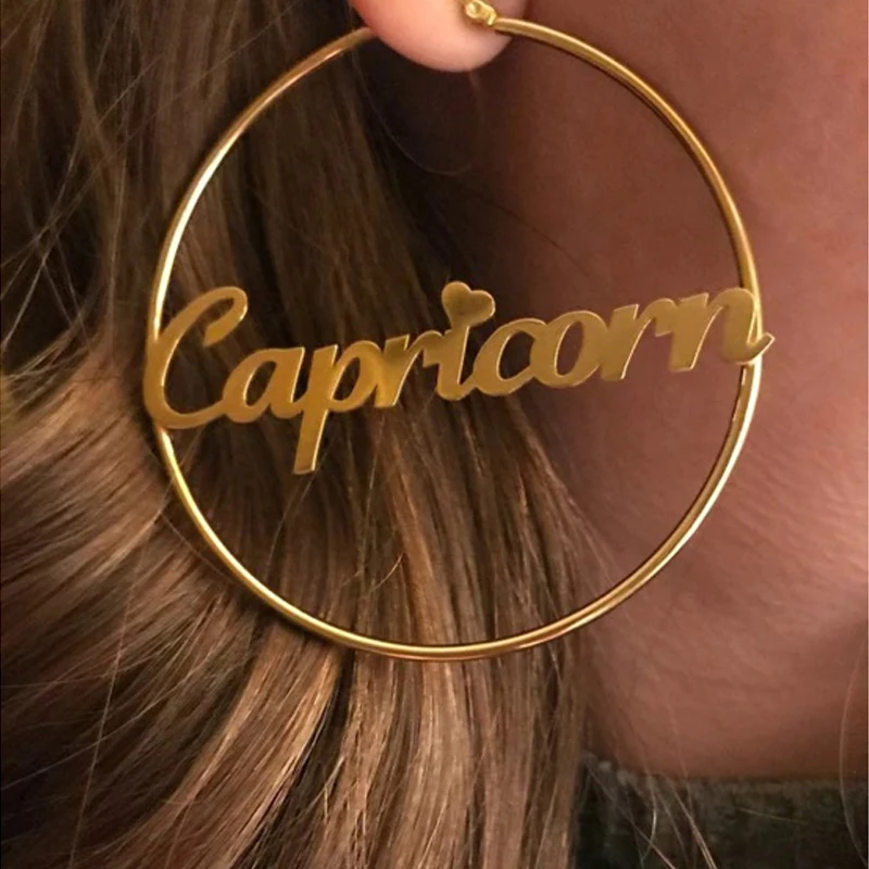 Индивидуальные серьги-кольца с именем, позолоченные серьги 18 карат...