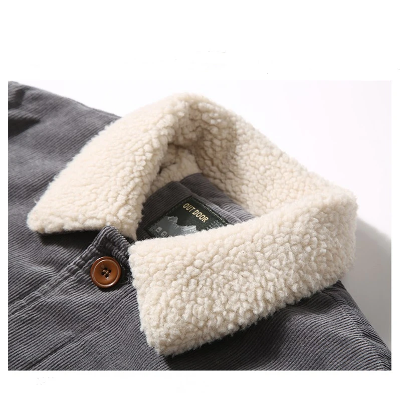 Зимняя уличная теплая одежда из чистого хлопка; Вельветовая ткань; Утолщенная ветрозащитная подкладка из овечьей шерсти; Свободное пальто для походов и рыбалки