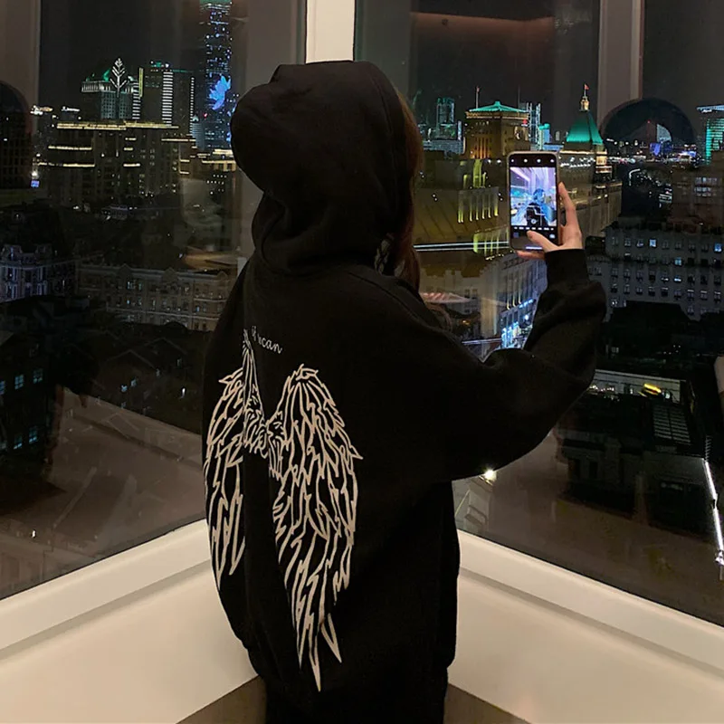 Женская толстовка со светоотражающими крыльями, осенне-зимний свитш...