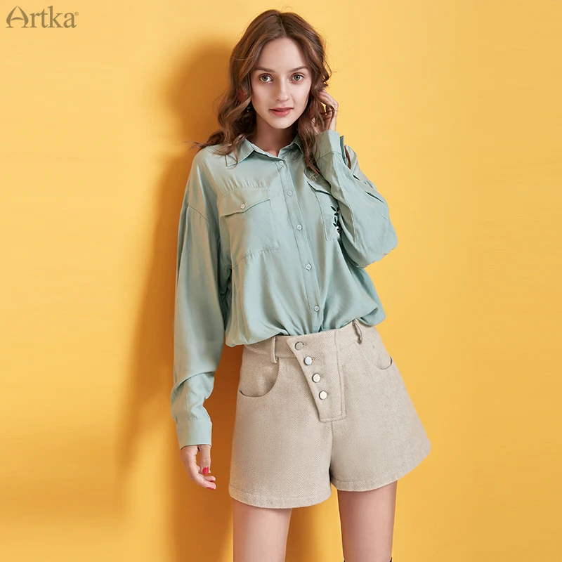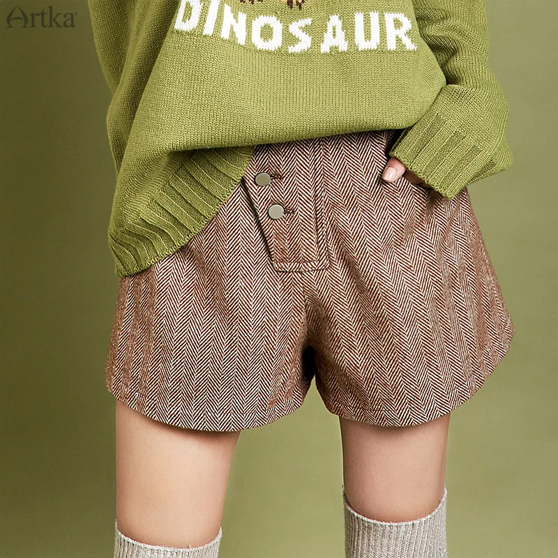 Женские шерстяные шорты в полоску ARTKA, серые повседневные теплые шорты с высокой талией и карманами, KA10095Q, зима 2019