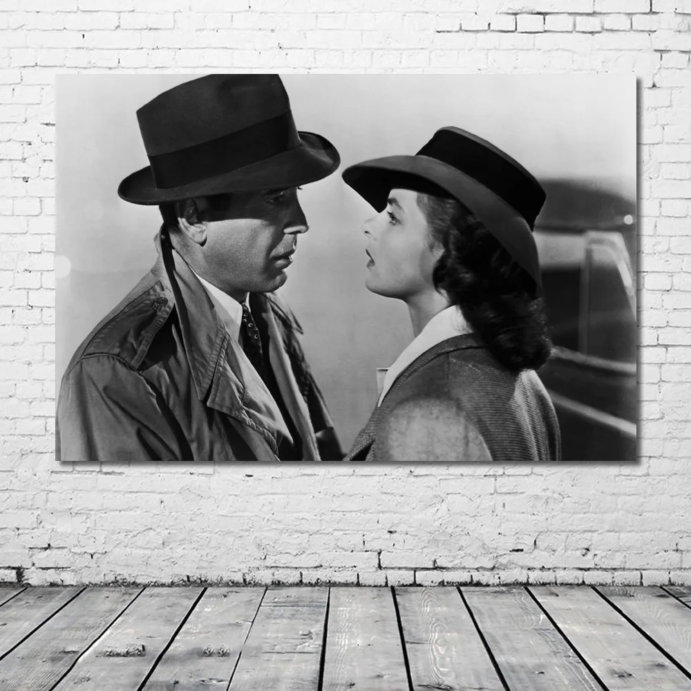Черно-белая романтическая картина из фильма Касабланка, картина на шелке, настенные художественные постеры и принты, современные украшения для дома